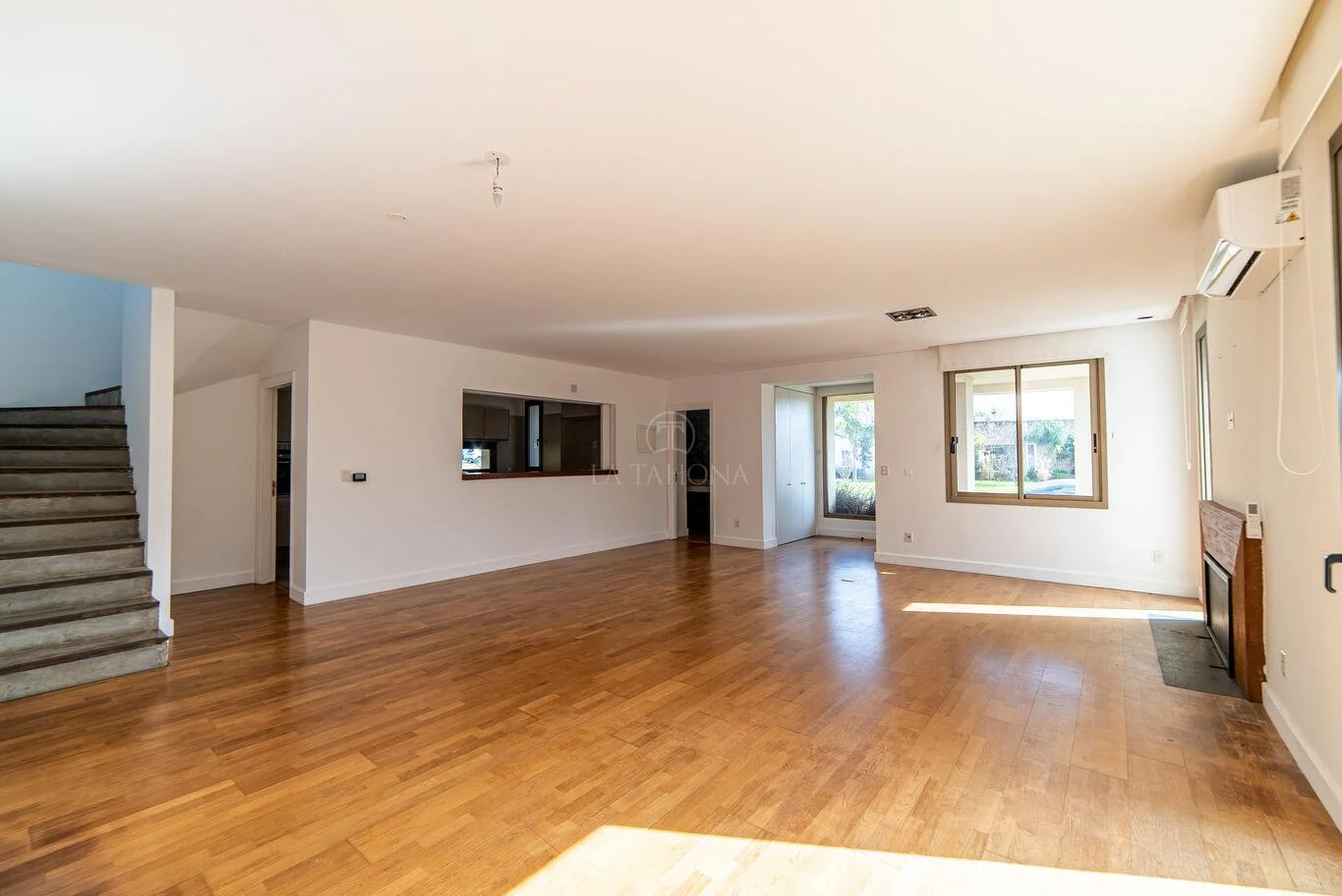 La casa se desarrolla en dos plantas, el área de terreno es de 1170 m² y de construcción es de 200 m².