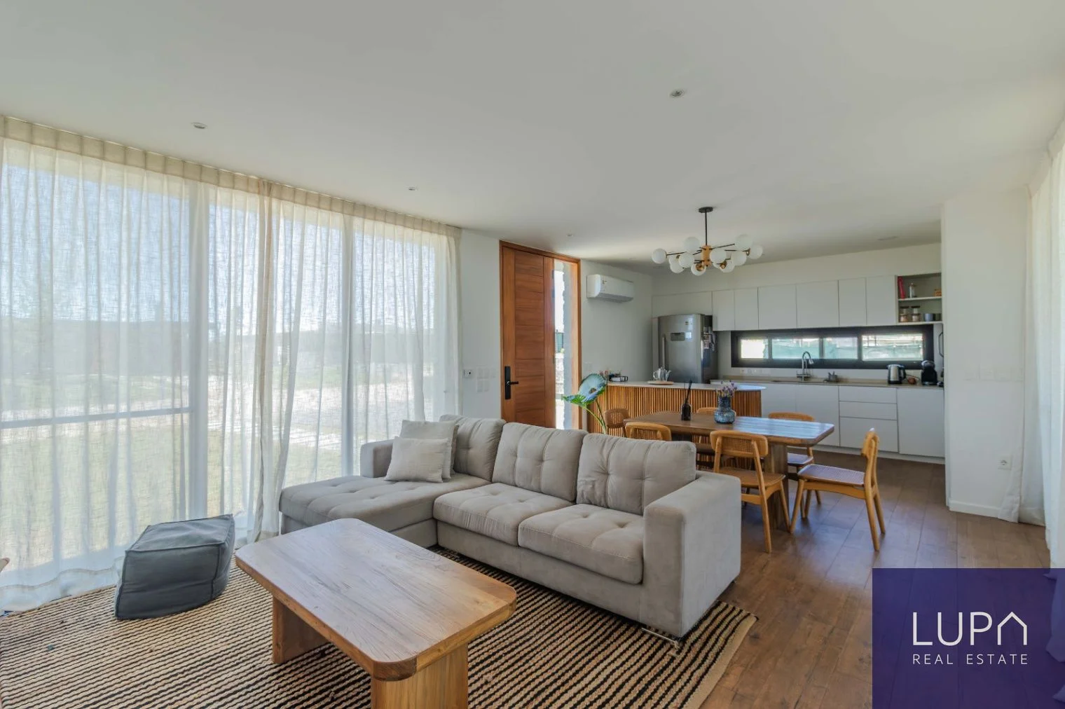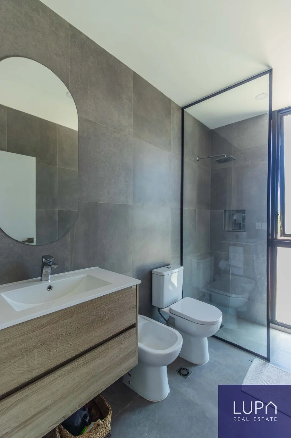 Además, la propiedad cuenta con losa radiante alimentada por bomba de calor, garantizando un ambiente cálido y acogedor durante los meses más fríos. En la parte exterior, disfrutarás de un encantador jardín y un amplio patio que proporciona un espacio ideal para el esparcimiento. Complementan esta oferta un depósito y una sala de máquinas, así como estacionamiento para visitantes, asegurando comodidad y practicidad. Situada en una manzana central y con un fondo oeste, esta casa a estrenar es una oportunidad única para quienes buscan un hogar que combine modernidad y confort en un entorno tranquilo y seguro.