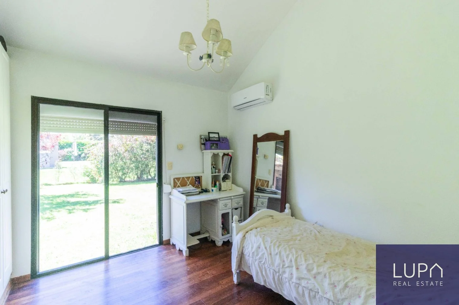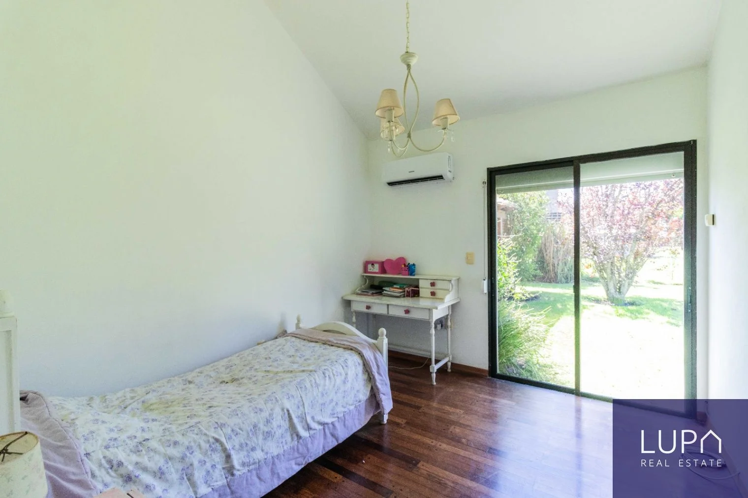 La propiedad incluye 3 dormitorios, donde se encuentra una suite principal y un baño completo adicional. Además, cuenta con dependencia de servicio completa y un lavadero independiente que aportan un valor funcional significativo. El sistema de calefacción mediante losa radiante eléctrica sectorizada y el aire acondicionado aseguran un confort óptimo durante todo el año. La cocina, definida y con comedor diario, se conecta armónicamente con las áreas sociales y la entrada a la cochera. El parrillero techado se integra al hermoso jardín, ideal para disfrutar de reuniones familiares o con amigos.