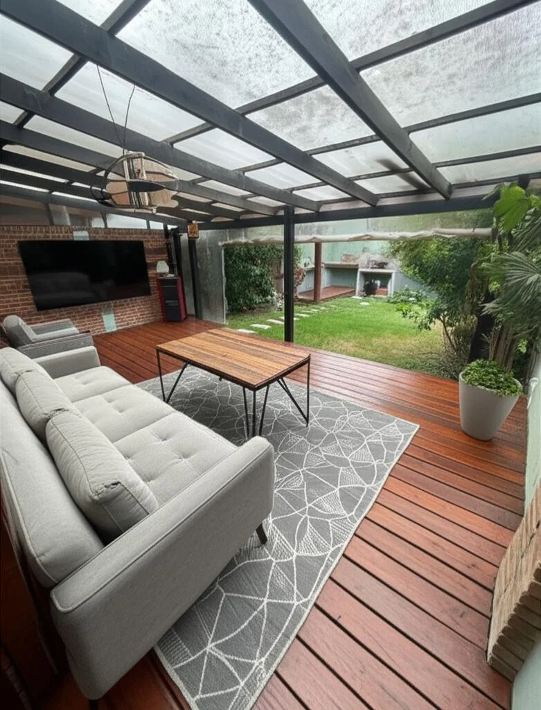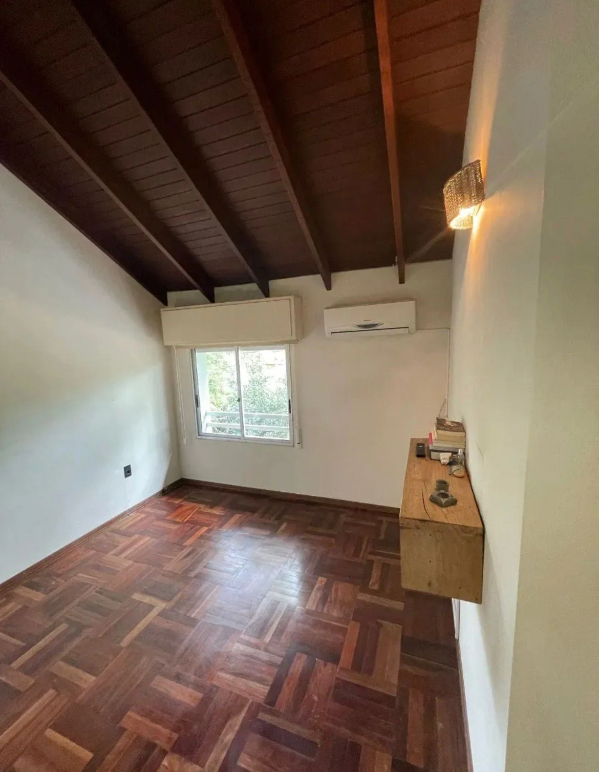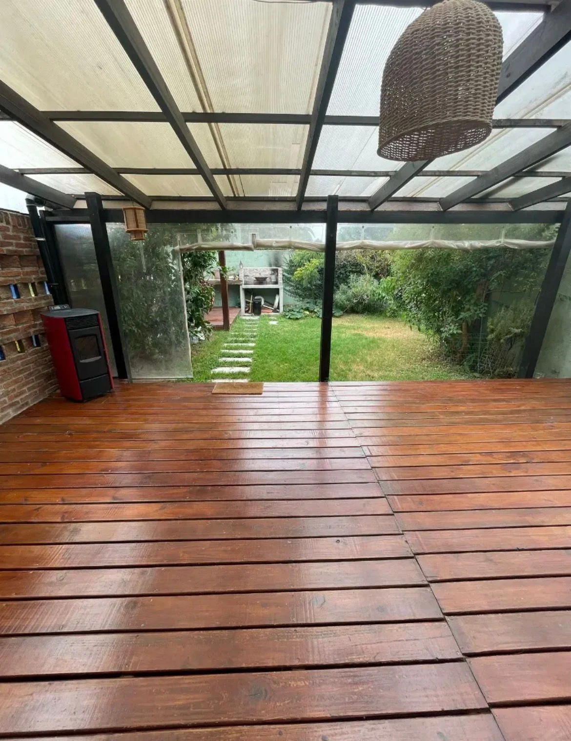 En su interior, el dúplex cuenta con un amplio living-comedor equipado con estufa a leña, perfecto para disfrutar de momentos acogedores en familia. La cocina, semi integrada y totalmente reciclada, dispone de un anafe, horno empotrado y campana extractora. Además, cuenta con un jardín de invierno que ofrece un espacio para depósito y un fondo verde que incluye un parrillero y un área destinada para el lavarropas. En la planta alta, se encuentran dos dormitorios luminosos, ambos con placares y aire acondicionado, complementados por un baño completo.