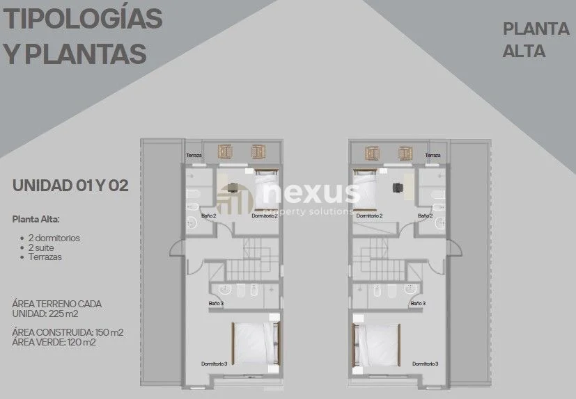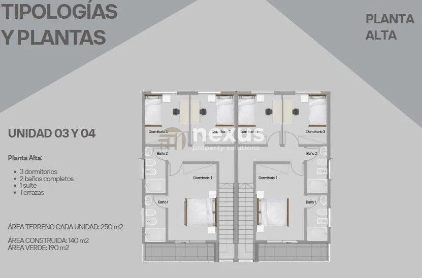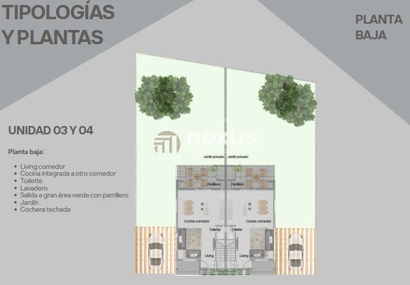 Hay dos prototipos de casas: las dos del frente cuentan con una superficie total de 250 m2, de los cuales construidos tienen 140 m2 y 190 m2 de área verde privada; y las 2 casa del fondo cuentan con una superficie total de 270 m², de los cuales construidos tiene 150 m² y 120 m² de áreas verdes, ofreciendo un diseño funcional y acogedor. Todas cuentan con tres dormitorios y tres baños, incluye un dormitorio en suite, una cocina equipada, un comedor, un living luminoso y un balcón que invita a disfrutar del aire libre. La propiedad también cuenta con un patio y jardín, ideales para disfrutar de reuniones familiares o momentos de relax. Adicionalmente, cuentan con cochera semicubierta y su completa infraestructura, que incluye agua corriente, luz, conexión para lavarropas, y saneamiento.