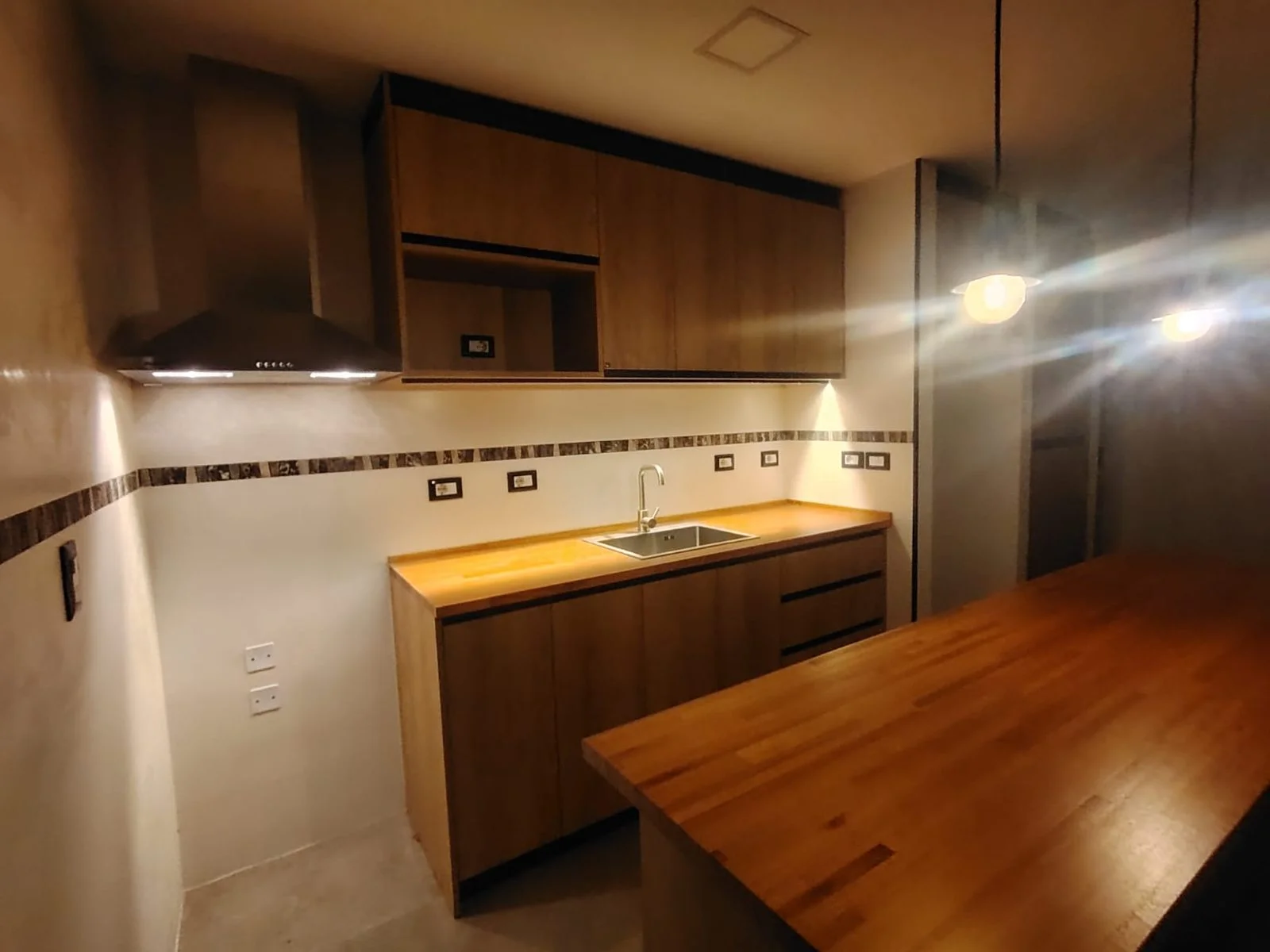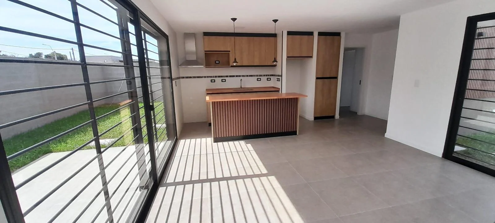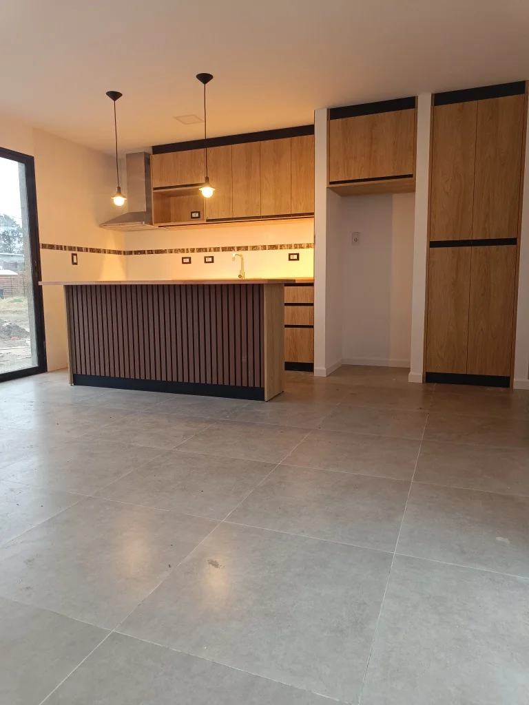 - Un amplio y acogedor living, con una hermosa cocina integrada.(Muebles bajo mesada y aéreos de cocina, en melaminico MDF roble, herrajes acero inox., con freno en puertas y cajoeneras)