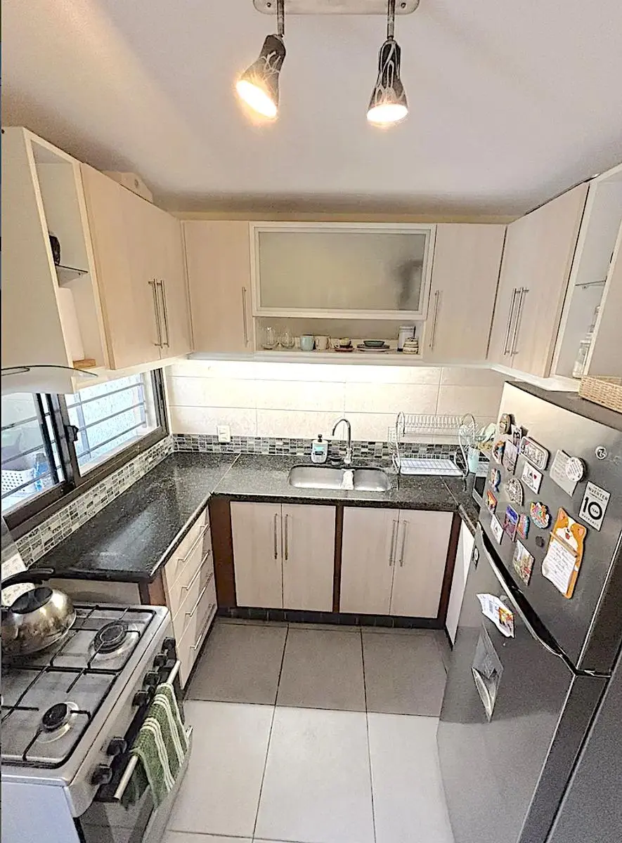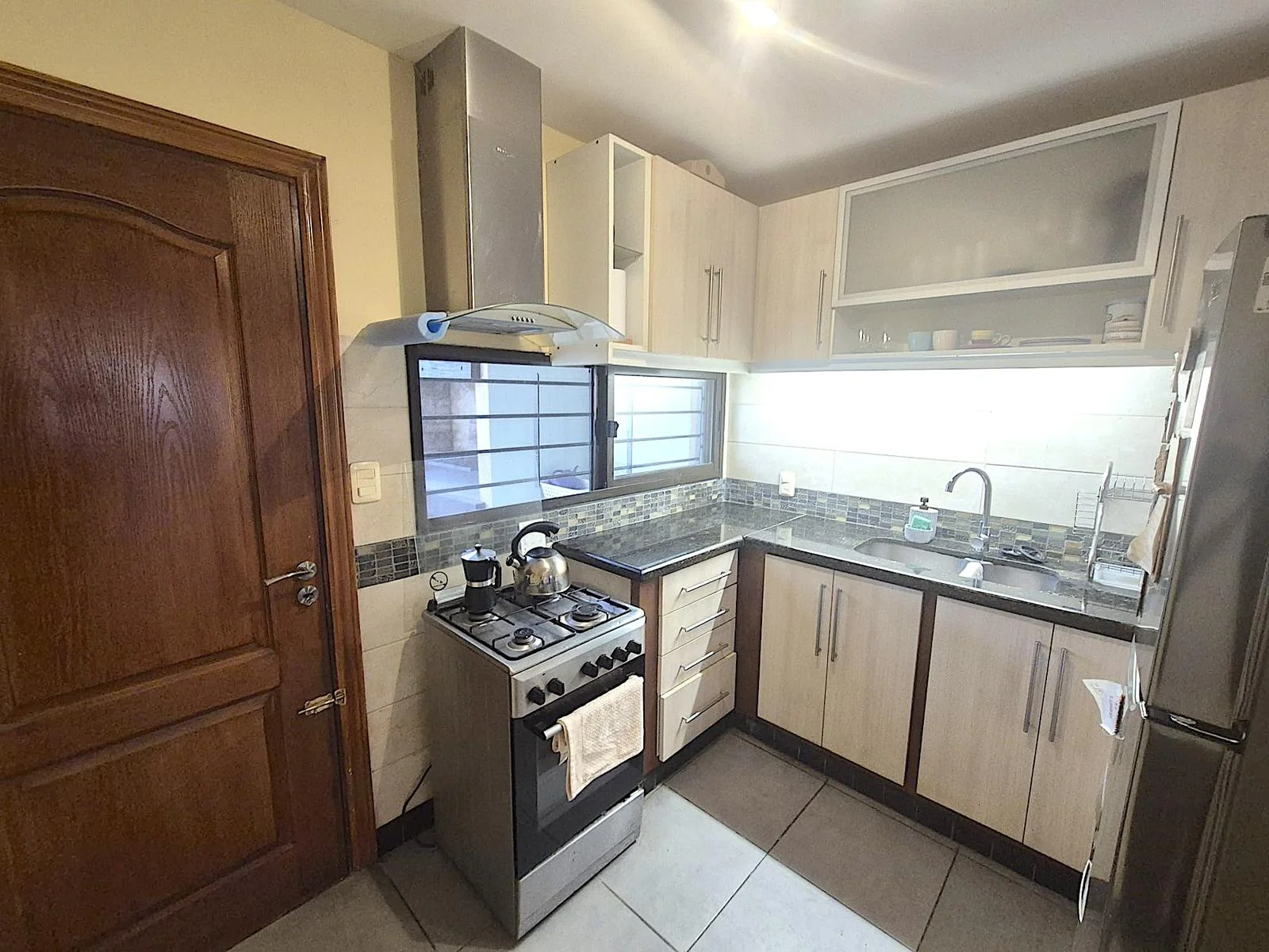 Cocina completa con campana y extractor.