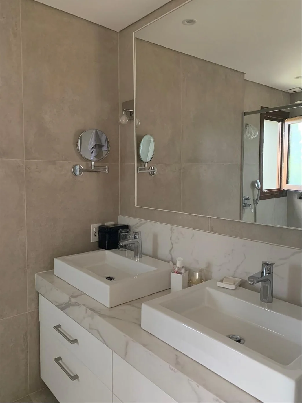 En planta alta: tres dormitorios, dos baños completos y mastersuite con vestidor y baño con doble bacha.