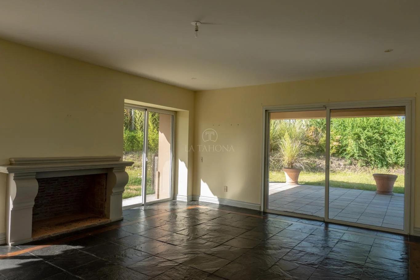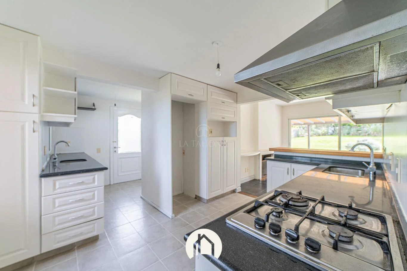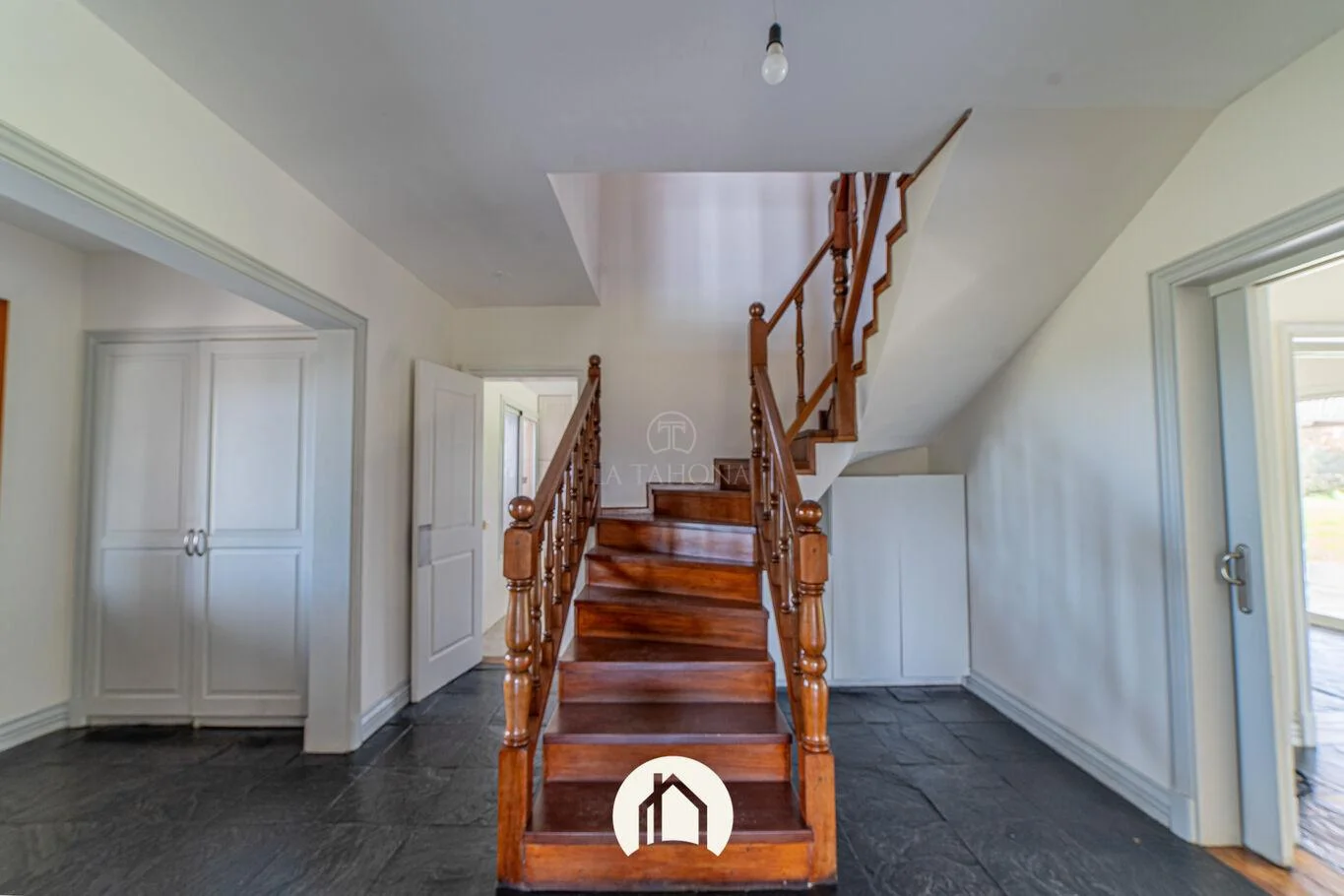 La casa se desarrolla en dos plantas, el área de terreno es de 1200 m² y de construcción es de 300 m².