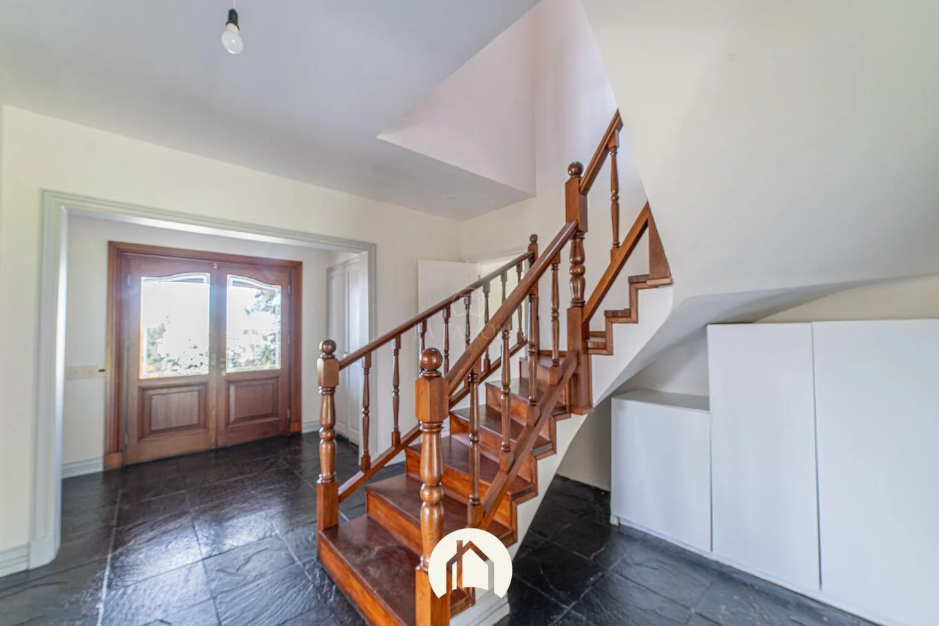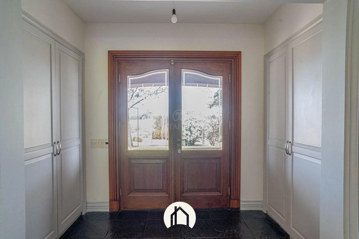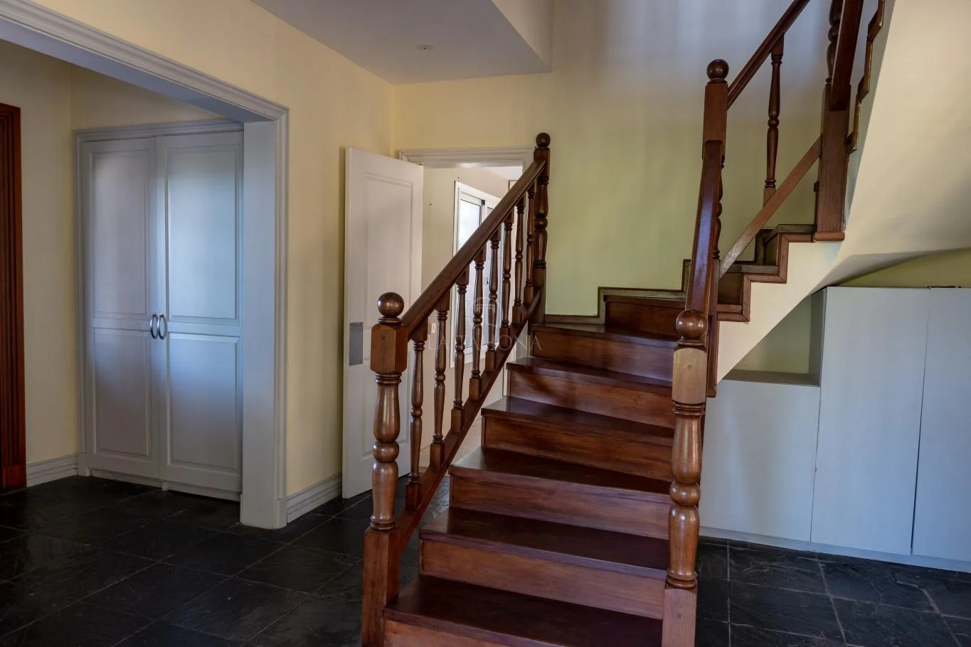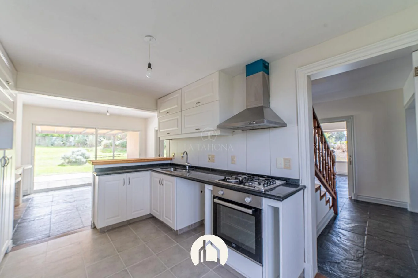La casa se desarrolla en dos plantas, el área de terreno es de 1200 m² y de construcción es de 300 m².