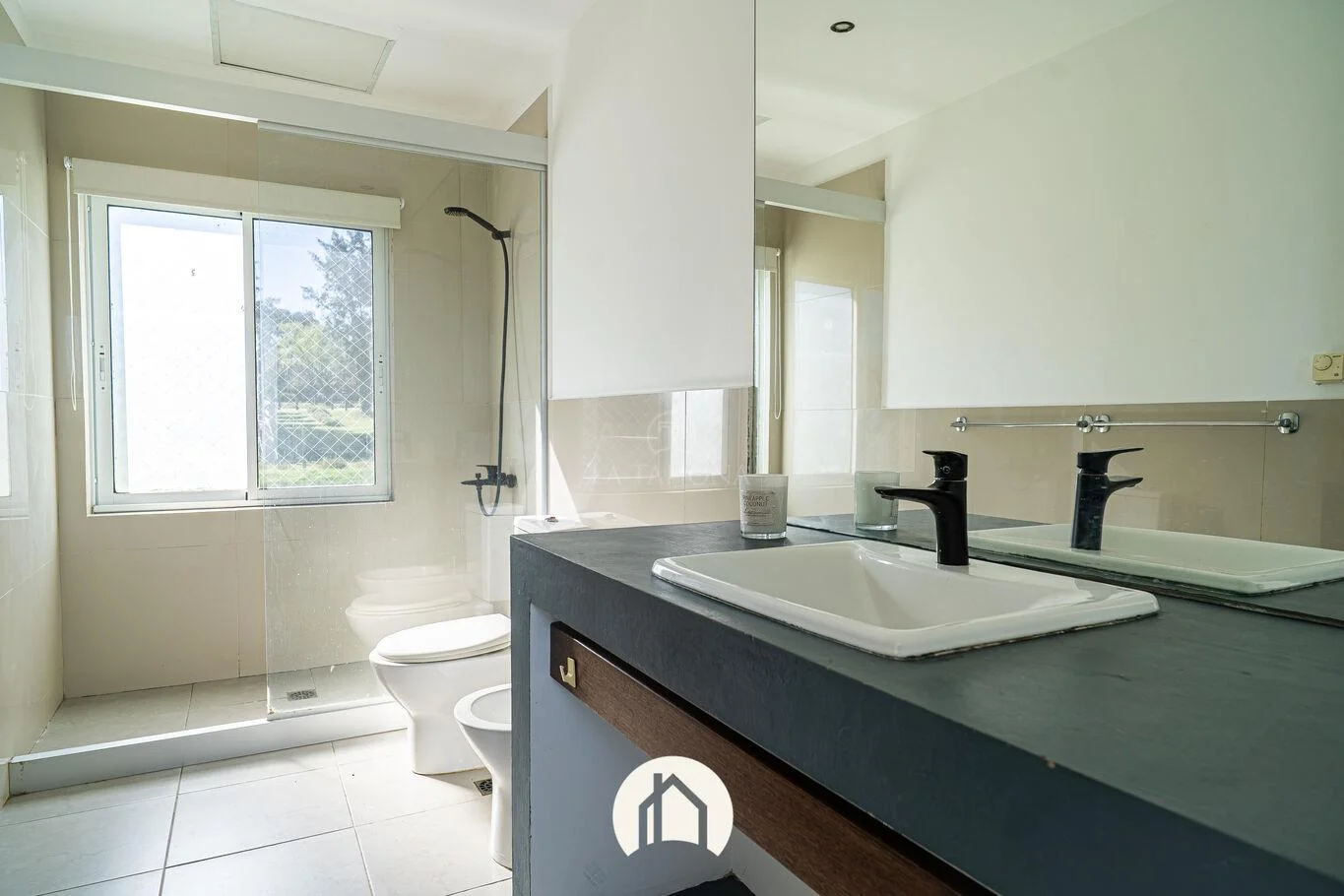 Inmobiliaria La Tahona Oficial - Beneficios exclusivos para nuestros clientes. La casa se desarrolla en dos plantas, el área del terreno es de 1190 m² y de construcción es de 300 m² + 40 m² terraza o cochera • 3 dormitorios (1 en suite). • 3 baños en total. • Living. • Comedor. • Estar. • Cocina. • Toilette. • Servicio. • Escritorio. • Calefacción losa radiante eléctrica.