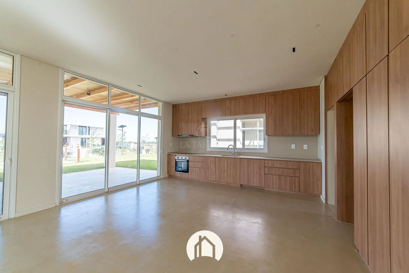 - Cocina con anafe, horno, extractor y lavavajilla, vinculada al living comedor.