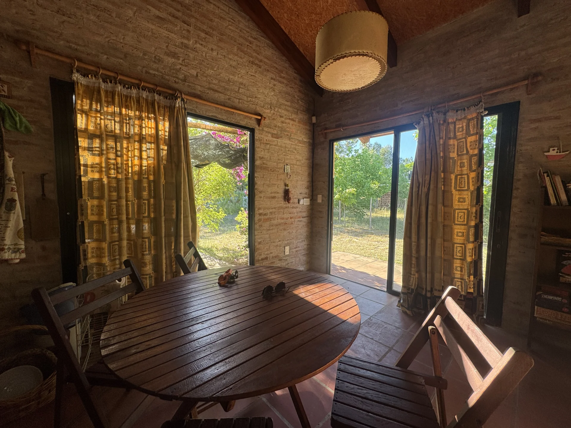 CASA SANTA ANA CANELONES SANTA ANA SUR CA502638 A solo una cuadra de la playa en Santa Ana, esta casa de 44 m2 en terreno de 432 m2 ofrece un entorno natural único y mucha tranquilidad. De construcción tradicional y en excelente estado, se vende amueblada, con títulos al día y sin detalles. Cuenta con un luminoso living comedor con cocina integrada, 1 dormitorio, 1 baño completo y un entrepiso utilizable como segundo dormitorio o depósito. Al fondo, un agradable deck con pérgola invita a disfrutar del aire libre. Las paredes de ladrillo visto le dan un estilo cálido y rústico.