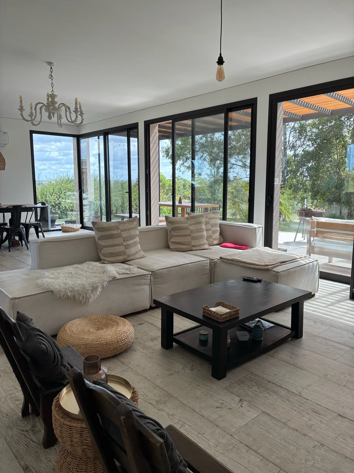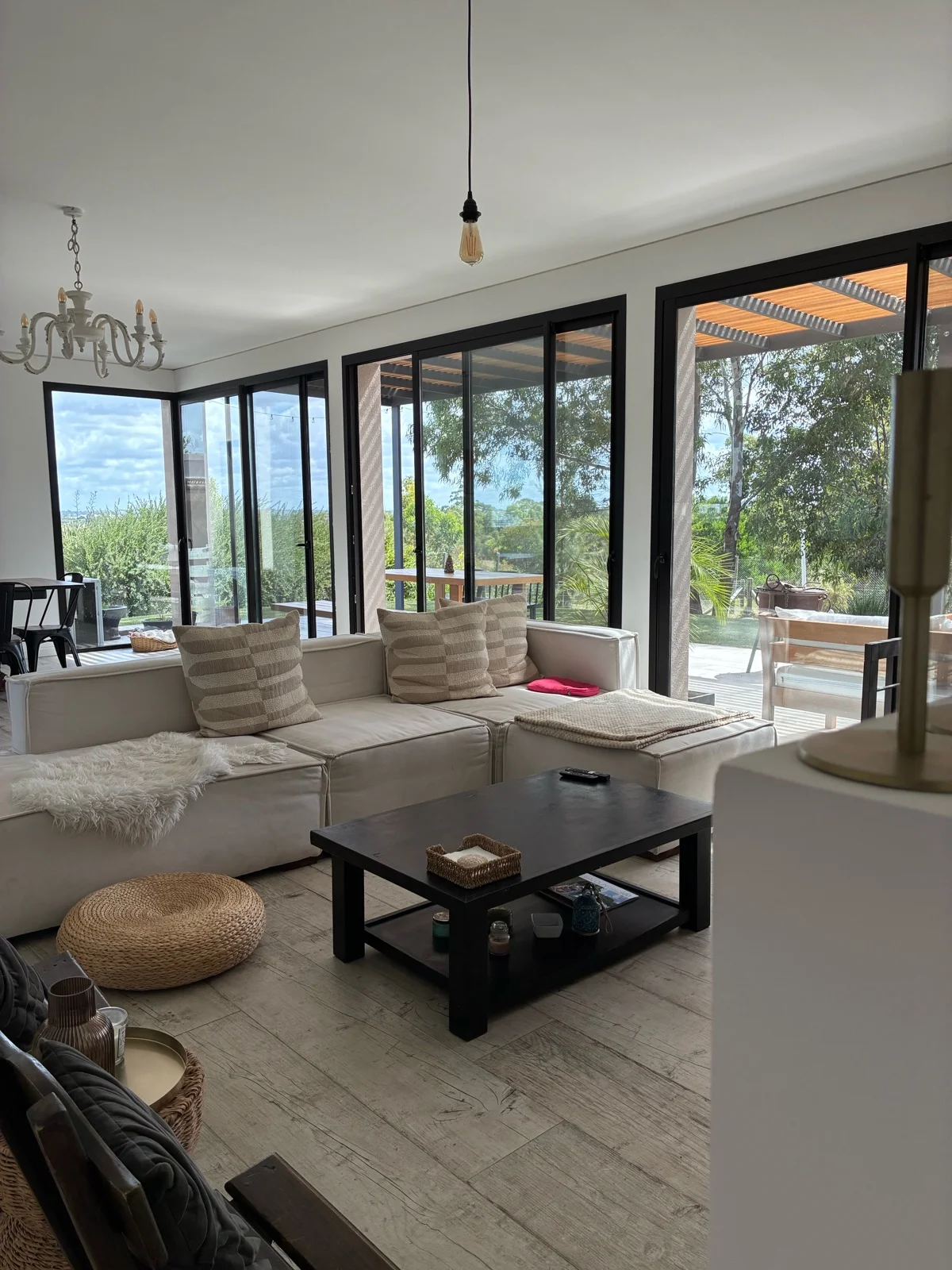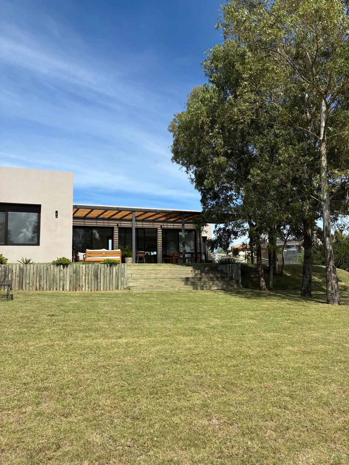 La casa, de construcción tradicional, se encuentra en un terreno de 1038 m2, de los cuales 213m2 son cubiertos distribuidos en 163m2 interiores y 50m2 de pérgola techada. Al ingresar se encuentran un amplio living comedor integrado a la cocina con isla. Estufa a leña de alto rendimiento para mayor eficiencia en calefacción. Espacio lavadero independiente. Grandes ventanales en todos los ambientes DVH con mosquiteros y persianas eléctricas a control remoto.