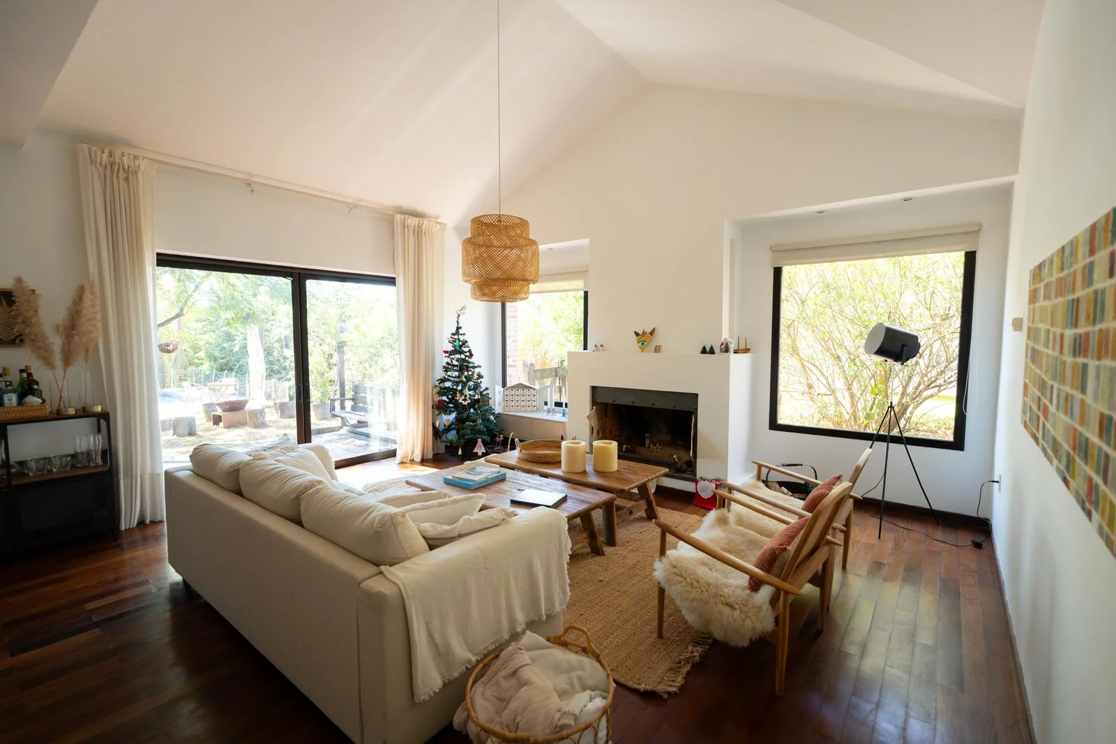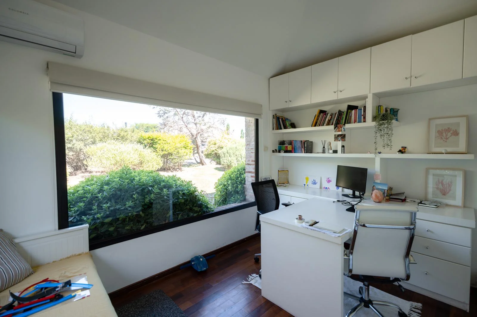 En PB: Living con estufa a leña y comedor, toilette, estar con estufa a leña, cocina con desayunador, lavadero, escritorio/ dormitorio, servicio completo, parrilla techada (conectada al estar y al living), amplio jardín con piscina. Los pisos son de lapacho, la calefacción eurocable y además tiene AA.