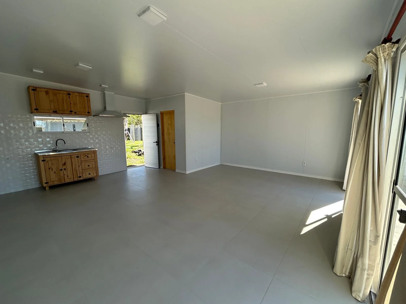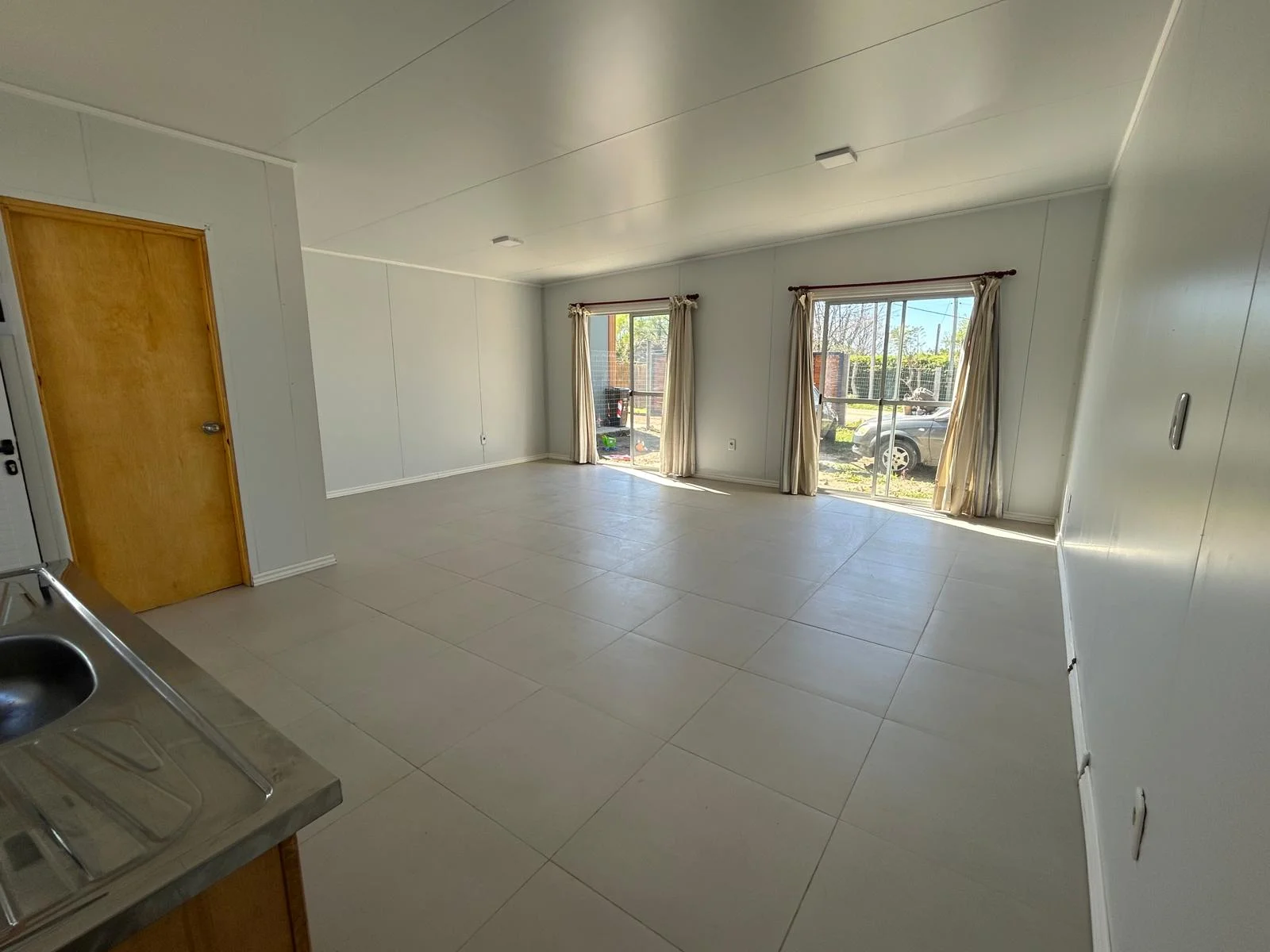 La propiedad cuenta con un luminoso living comedor integrado a cocina y un baño. Tiene frente con lugar para tres autos y fondo propio.