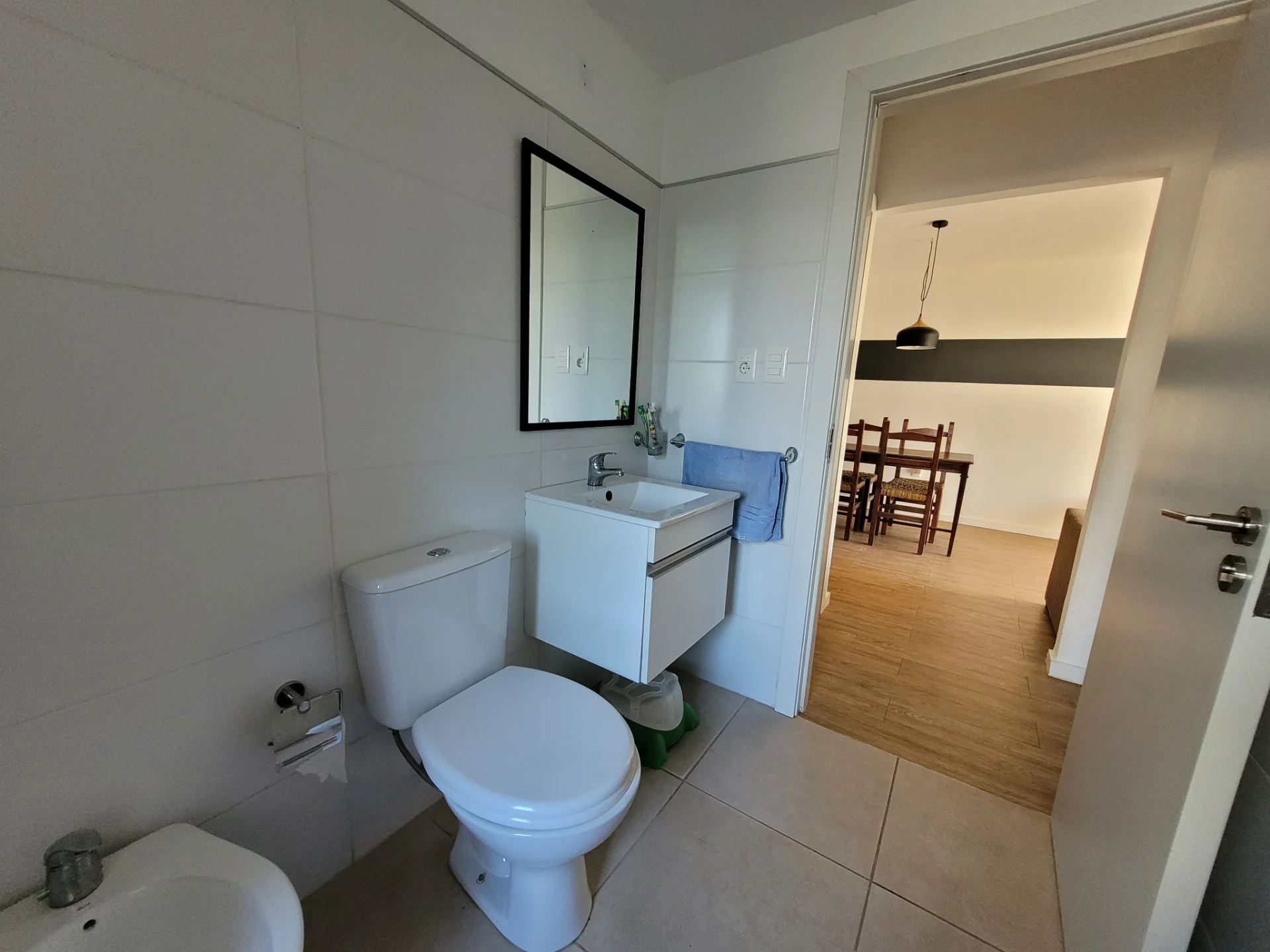El interior es cómodo y funcional, con una cocina integrada al área social a través de una práctica barra de madera. Además, posee un patio de servicio independiente con conexión para lavarropas y tender.