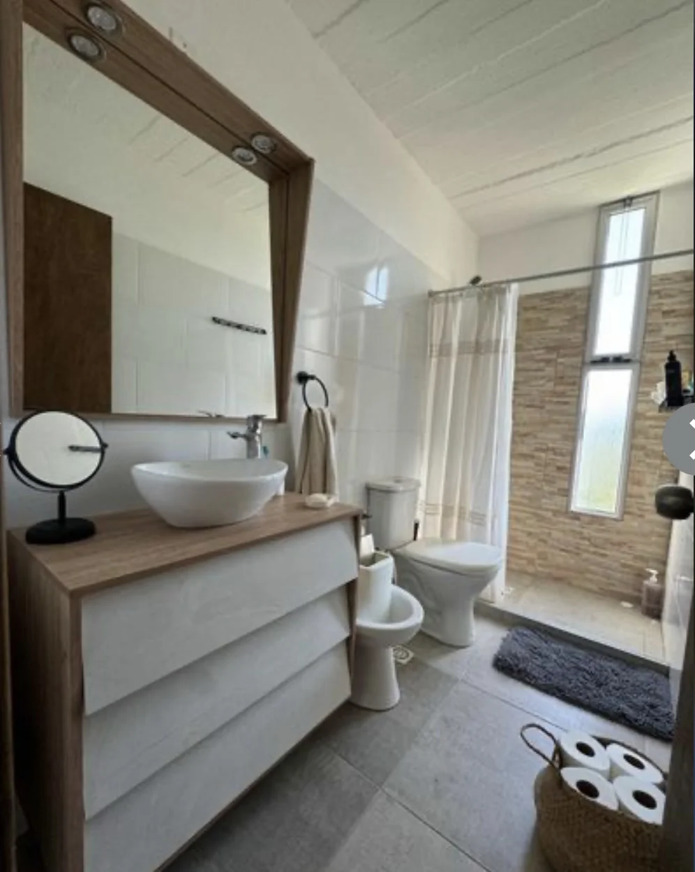 construidos. Living comedor con estufa de alto rendimiento, tres dormitorios y dos baños completos. Sol todo el día. Sistema de riego, portón eléctrico, aire acondicionado. Jardín con parrillero. Garantías Porto, Sura, Mapfre.