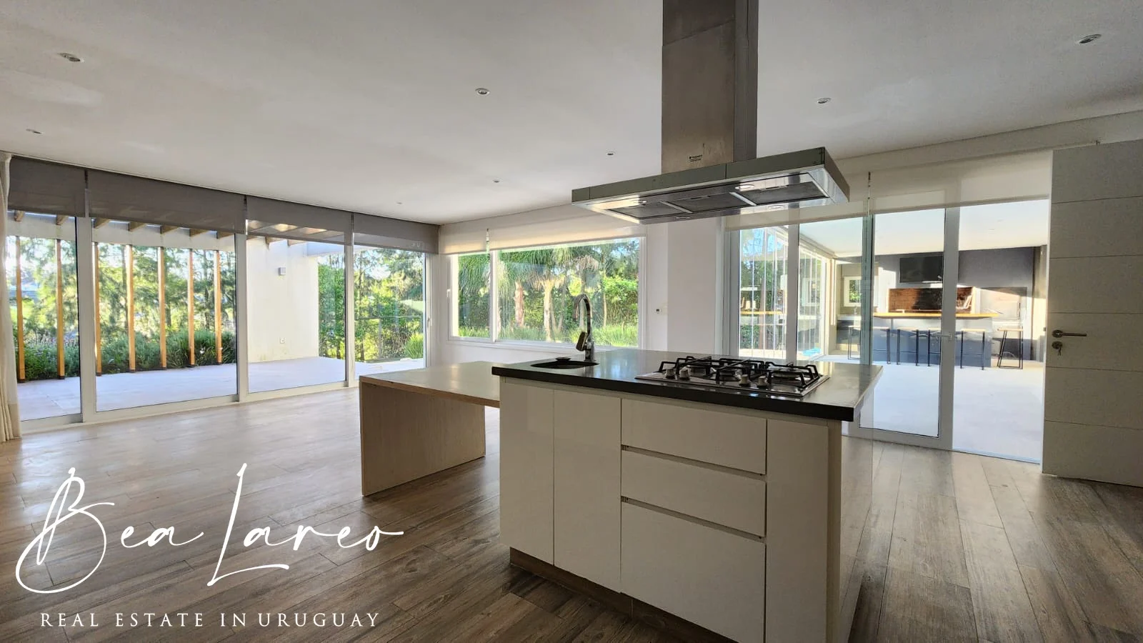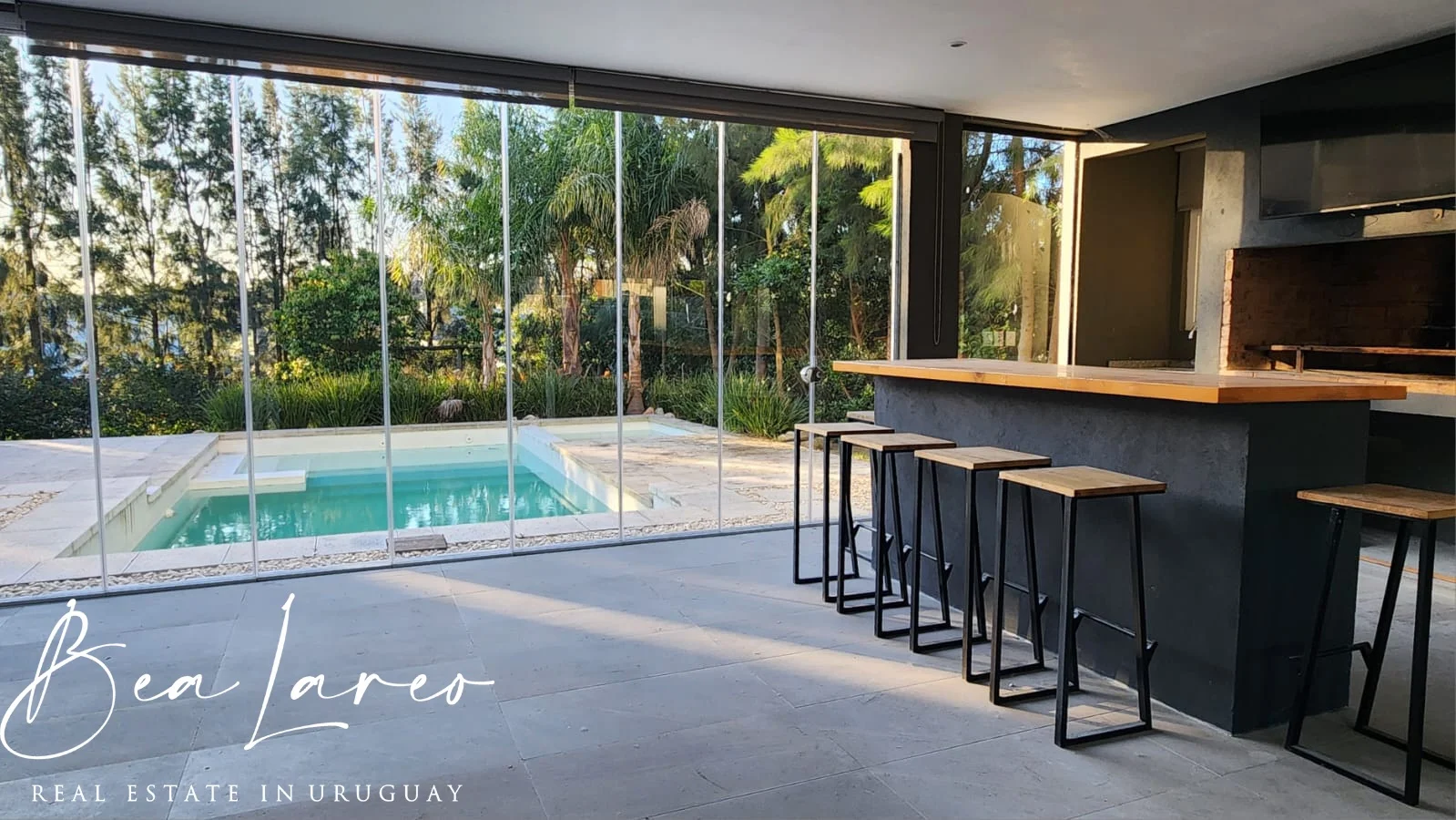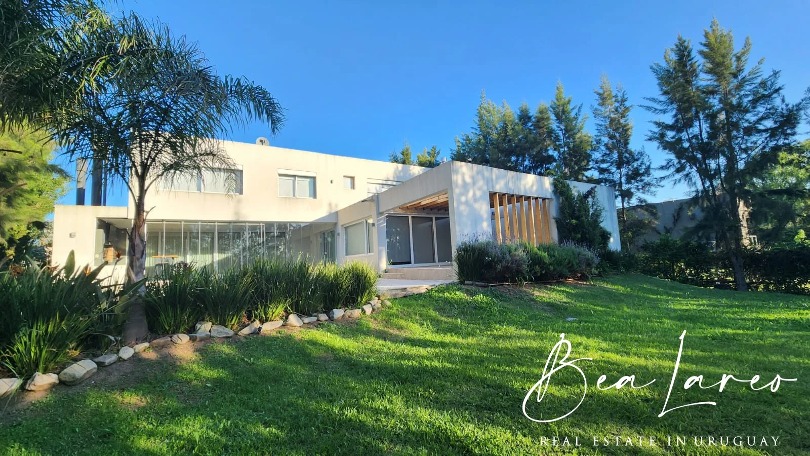 Luminosa casa de diseño ubicada en el barrio privado Altos de la Tahona. Desarrollada en dos plantas, cuenta con 420 m2 construidos y ocupa un terreno de 1.070 m2. En planta baja dispone de recepción, escritorio, gran living con estufa a leña, toilette, moderna cocina con isla integrada con el estar, lavadero, y dormitorio de servicio con baño. Gran barbacoa vidriada adosada a la casa, con parrillero y horno de pan. En planta alta ofrece área de escritorio y 4 dormitorios: 2 amplias suites, la principal con gran vestidor y baño con jacuzzi, y 2 dormitorios que comparten 1 baño. Disfrutable terraza con deck sobre el jardín, piscina climatizada y jacuzzi. Calefacción por losa radiante eléctrica (Eurocable), aire acondicionado en todos los ambientes, y estufa de alto rendimiento en el estar. Prevision para domótica. Garaje cerrado para 2 autos. Seguridad 24 hs del barrio privado.
