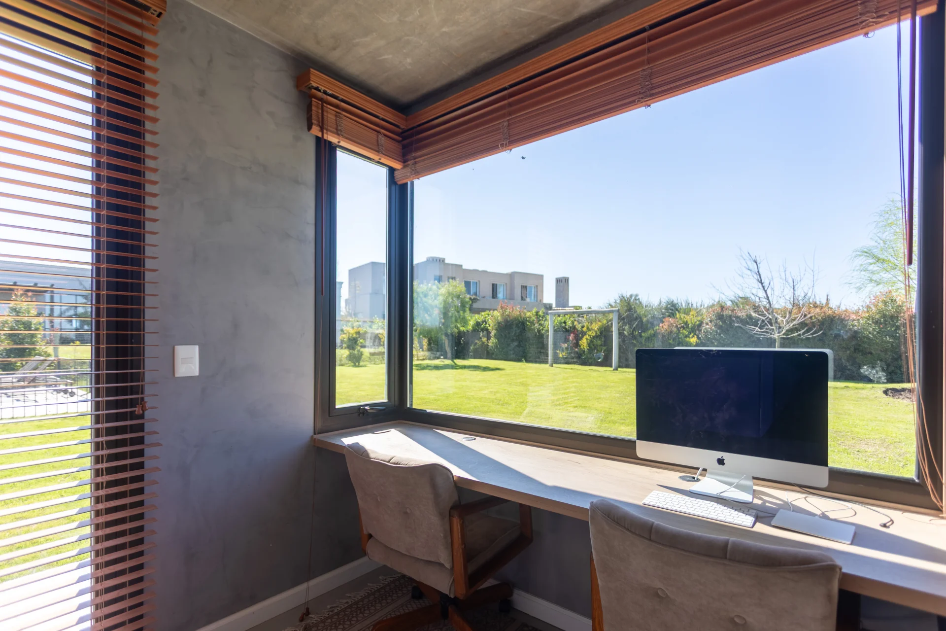Espectacular casa en Mirador de la Tahona. Desarrollada en una planta, orientada al Norte. Sobre calle cerrada. 1.300 m2 de terreno y 230 m2 interiores + 30 m2 de pérgola + 30 m2 de piscina con deck. Hall de entrada, gran living comedor con estufa a leña y salida a galería techada con parrillero. Estar amplio con estufa de alto rendimiento. Toilette. Cocina definida y servicio completo. Lavadero y tendedero techado. Tres dormitorios muy luminosos; el principal en suite con vestidor y escritorio. Baño completo para los otros dormitorios. Segundo escritorio o deposito. Sistema de calefacción con losa radiante con bomba de calor. Aires acondicionados en todos los ambientes. Pérgola exterior techada con parrillero y barra. Espectacular fondo verde con piscina climatizada. Excelente calidad de terminaciones. Amenities: -Seguridad y portería: Vigilancia las 24 horas del día, los 365 días del año. - Transporte: Servicio de transporte ida y vuelta a Montevideo. - Club House: Espacio con piscina, barbacoa y ambiente para celebrar eventos y reuniones. - Áreas recreativas: Plaza con juegos para niños y áreas verdes