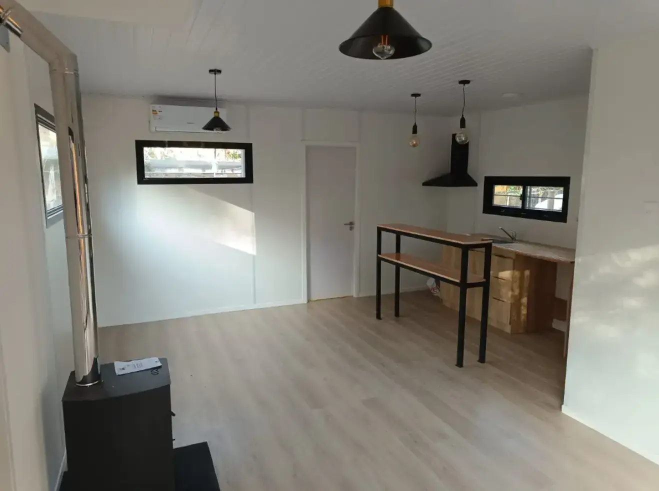 Casa a estrenar en alquiler – El Pinar Sur A pasos de Av. Giannattasio Terreno de 400 m² totalmente cercado, 50 m² interiores Garantía a convenir (se aceptan todas menos depósito) 2 dormitorios | 1 baño completo -Entrada independiente con amplio espacio para varios autos -Cocina integrada a living comedor -Instalación prevista para lavarropas y gas por garrafa exterior -Piso flotante en toda la casa Incluye: -Estufa a leña de alto rendimiento -Aire acondicionado -Campana de cocina -Rejas en todas las aberturas Cada cuarto mide 2,20 x 2,90 Acepta mascotas. Posibilidad de entrega con calefón, cocina, heladera y mobiliario (opcional, no incluido en el precio). ¡No dudes en agendar tu visita! Demir Propiedades