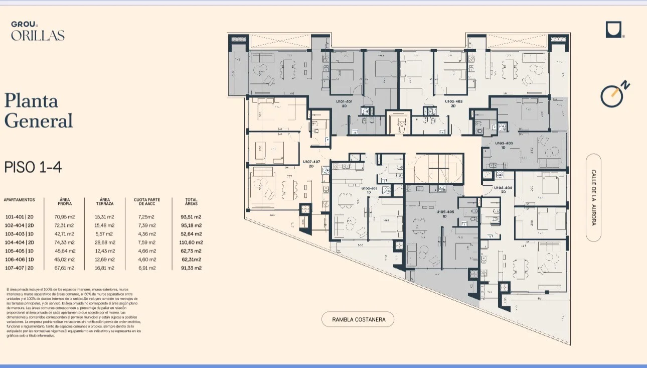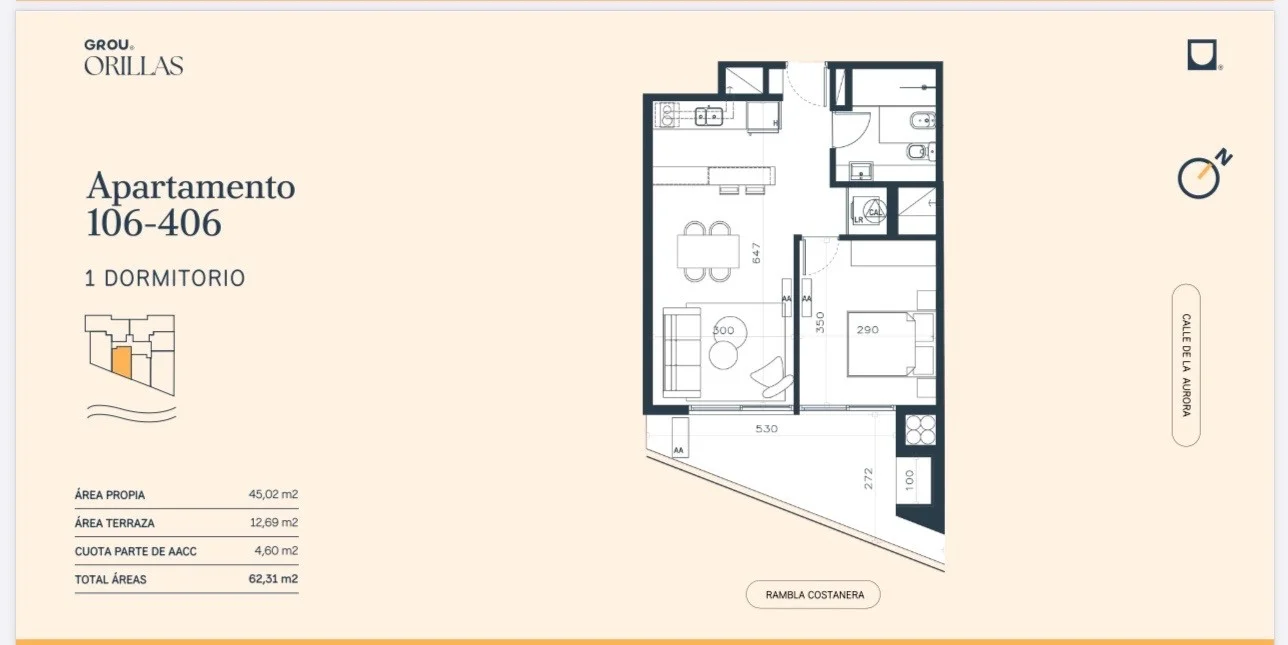 Descubra EDIFICIO ORILLAS, un ícono de estilo de vida dinámico y moderno estratégicamente ubicado en la vibrante Ciudad de la Costa. Este exclusivo desarrollo se alza majestuosamente frente a la playa, sobre la Rambla y De la Aurora, ofreciendo vistas inigualables y un acceso privilegiado a las principales vías de circulación de la ciudad. Su cercanía a centros comerciales y extensas zonas parquizadas garantiza una combinación perfecta de comodidad urbana y serenidad natural. ORILLAS ha sido diseñado para enriquecer su día a día con una gama de amenidades de primer nivel. Disfrute de momentos inolvidables en la barbacoa techada, ubicada en la azotea del edificio y completamente equipada con mobiliario de diseño, parrilla y TV, ideal para reuniones sociales. Relájese en las terrazas con parrillero o sumérjase en la gran terraza solárium, un espacio acondicionado para el máximo confort. Además, el edificio cuenta con una refrescante piscina y un práctico laundry. La seguridad y el confort son pilares en ORILLAS. El edificio dispone de recepción, vigilancia 24/7 y un avanzado circuito cerrado de cámaras de seguridad (CCTV) en accesos, cerco perimetral y áreas comunes exteriores. Para su comodidad, se ofrecen cocheras individuales en planta baja con portones automáticos y control remoto, así como un espacio dedicado para guardar bicicletas. El sistema de portero eléctrico y telefonía interna centralizada complementa la experiencia de vida. Aproveche esta oportunidad única de adquirir un apartamento de 1 dormitorio con terraza al frente (unidad 406) desde U$S 207.100. Los garajes están disponibles desde U$S 24.000. A estos precios se le suman un 5% de gastos de ocupación y un 3% + IVA de comisión inmobiliaria. La fecha de entrega estimada es a fines del 2027. No dude en consultarnos para más información, en ACTITUD PROPIEDADES estamos a su entera disposición para ayudarle a encontrar su nuevo hogar.