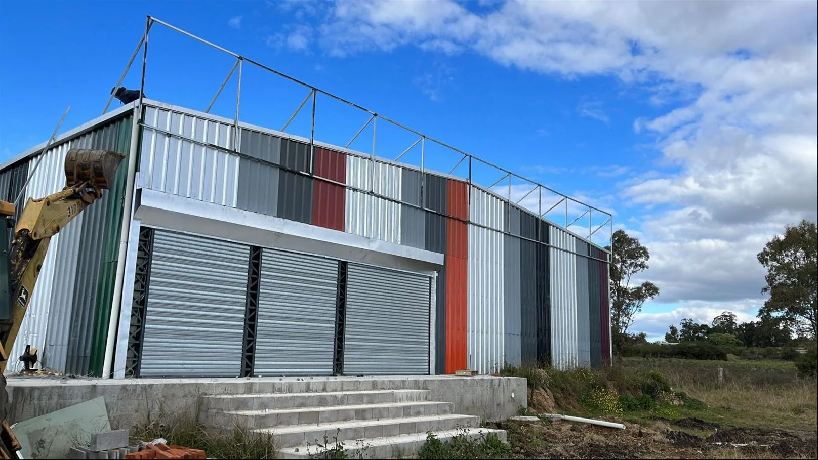 Cuenta con un portón doble sobre un costado ,y de dos amplios portones al fondo como
