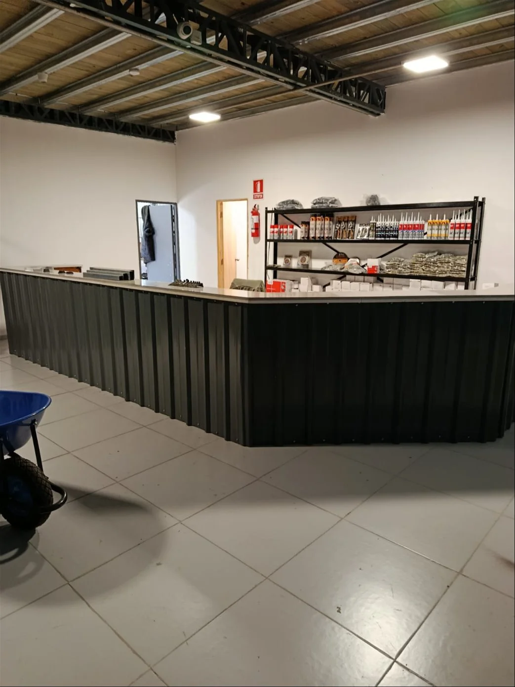 El local tiene una sola fila de columnas ya que el techo es a dos aguas.