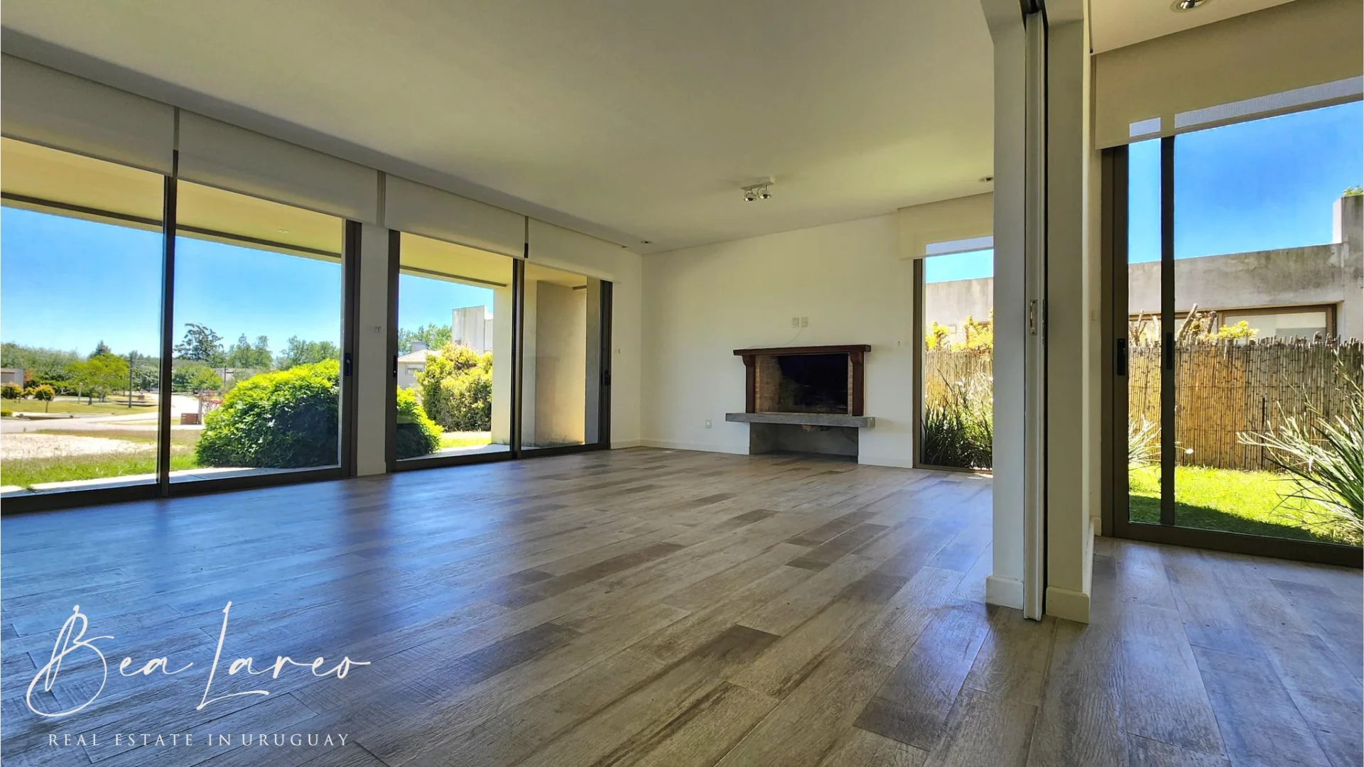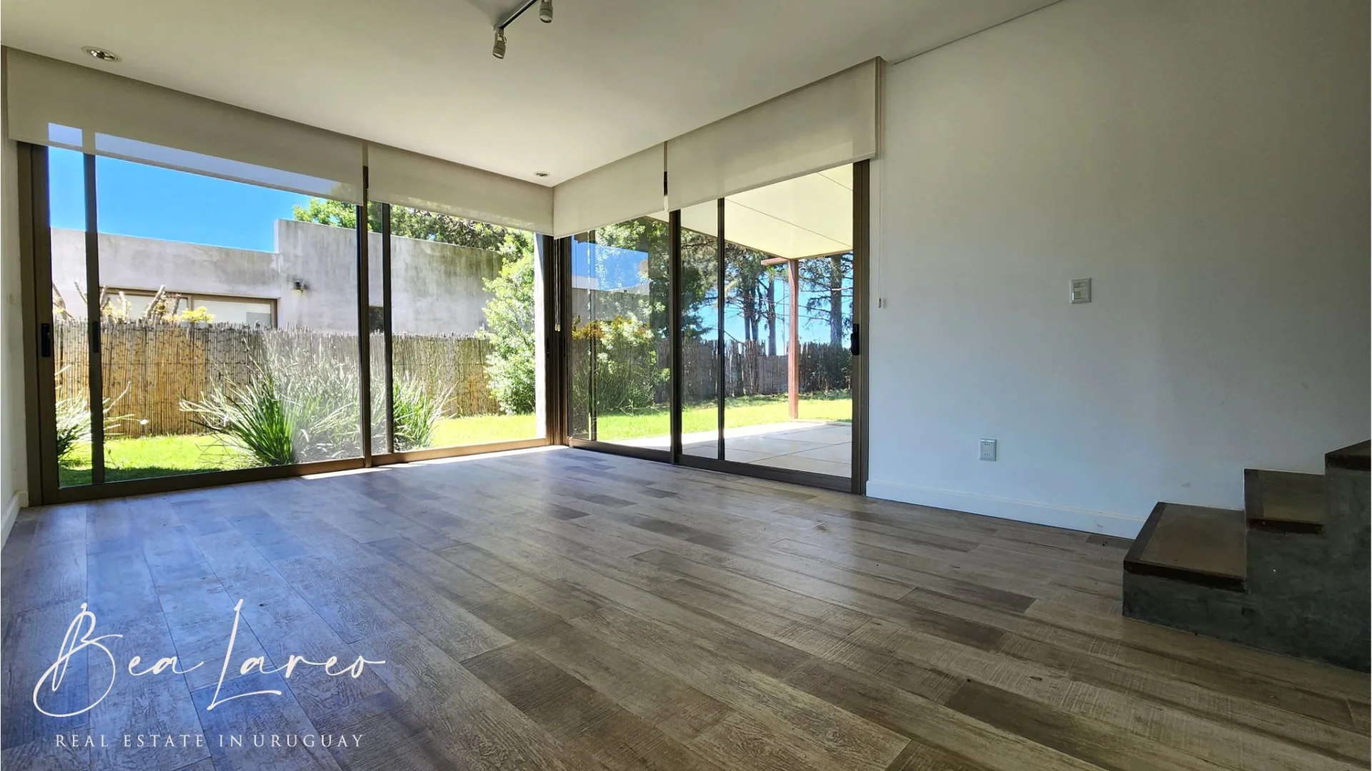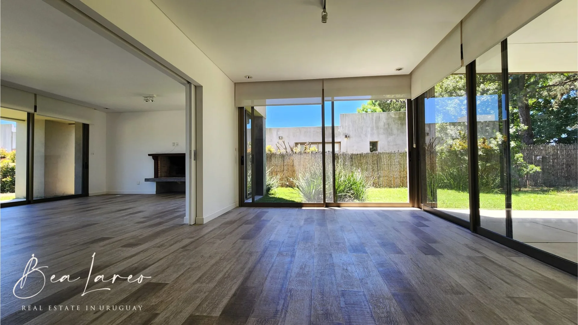 Bright minimalist-style house located in the exclusive private neighborhood of Viñedos de la Tahona. It features 270 sqm of living space on a 1,224 sqm lot. The ground floor includes an entrance hall, a spacious living-dining area with large windows and a wood-burning stove, a family room with access to a large terrace with a barbecue, a guest bathroom, a large fully-equipped kitchen, a service bedroom with en-suite bathroom, and a laundry room. Upstairs the house offers 3 bedrooms with floor-to-ceiling windows, all opening to a lovely terrace: the master suite, and two bedrooms that share a bathroom. There is also an office space. The house is equipped with gas underfloor heating, additional air conditioning, and water heaters. The property features a well-maintained garden and a covered garage for two cars.