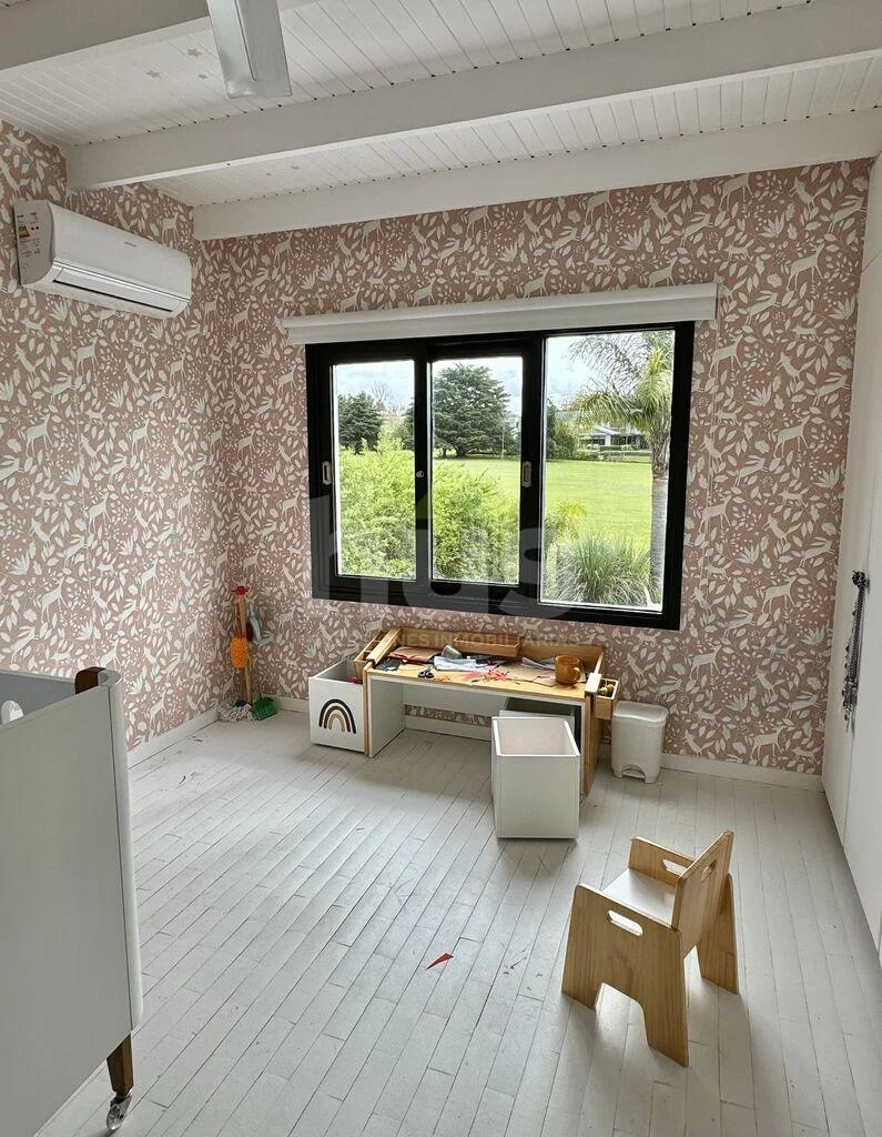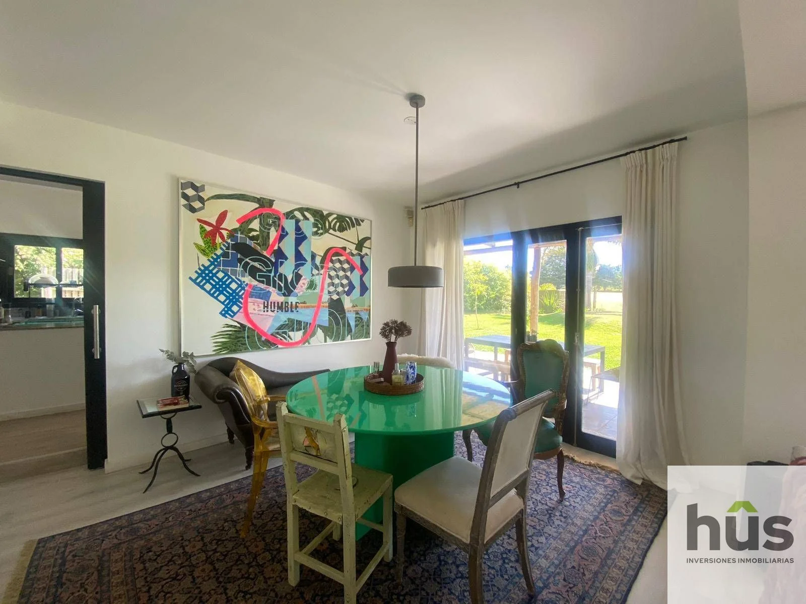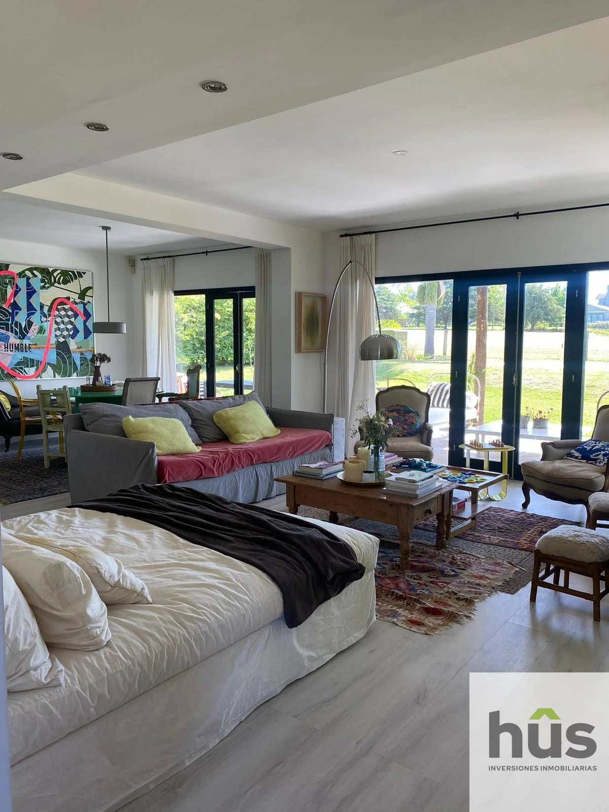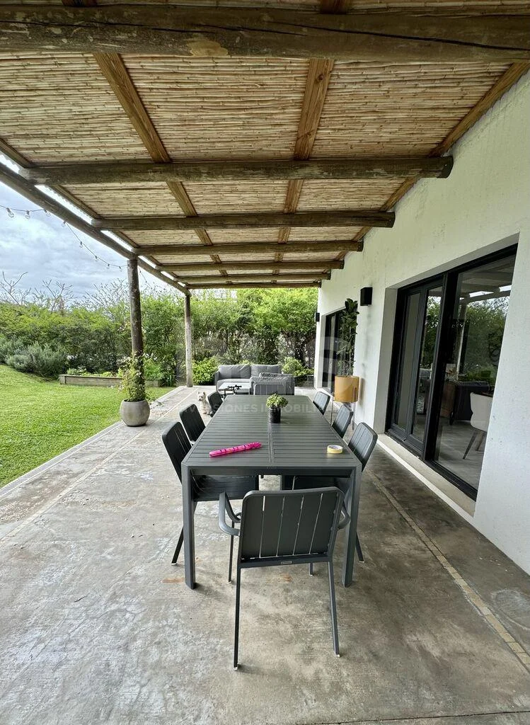 Hall de entrada, living-comedor con estufa y amplios ventanales a pergola y jardín, baño social.