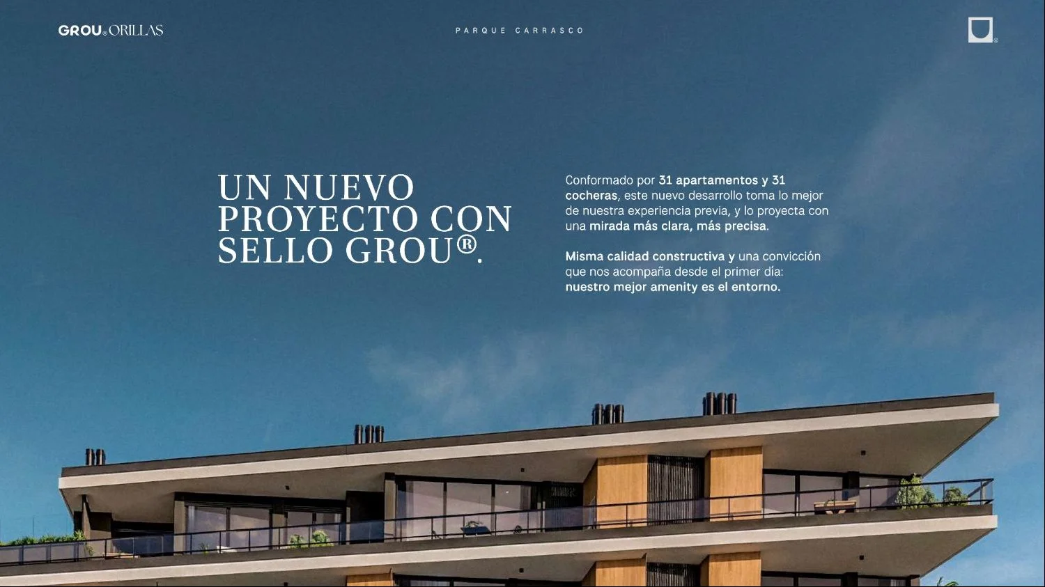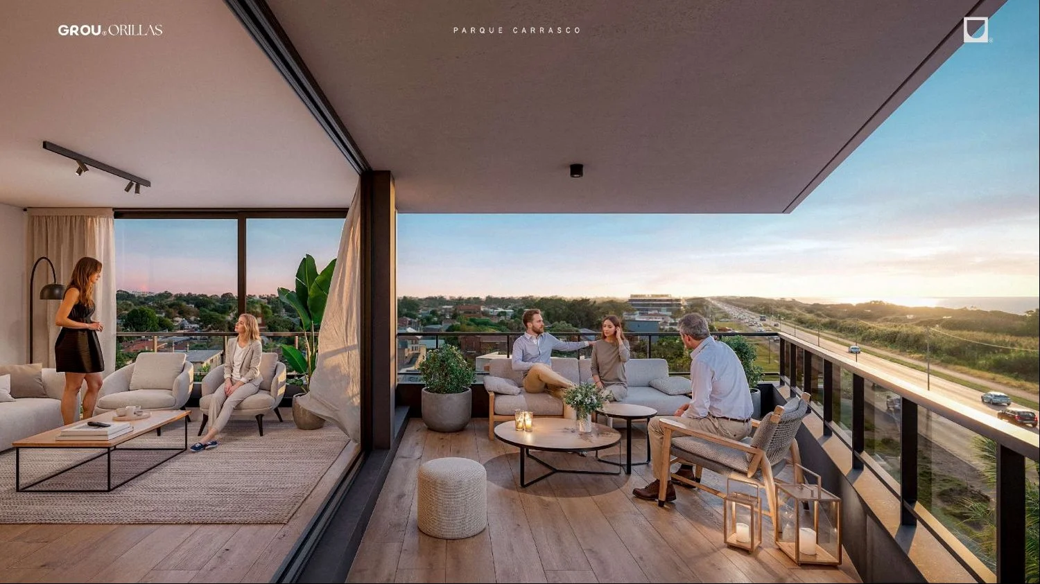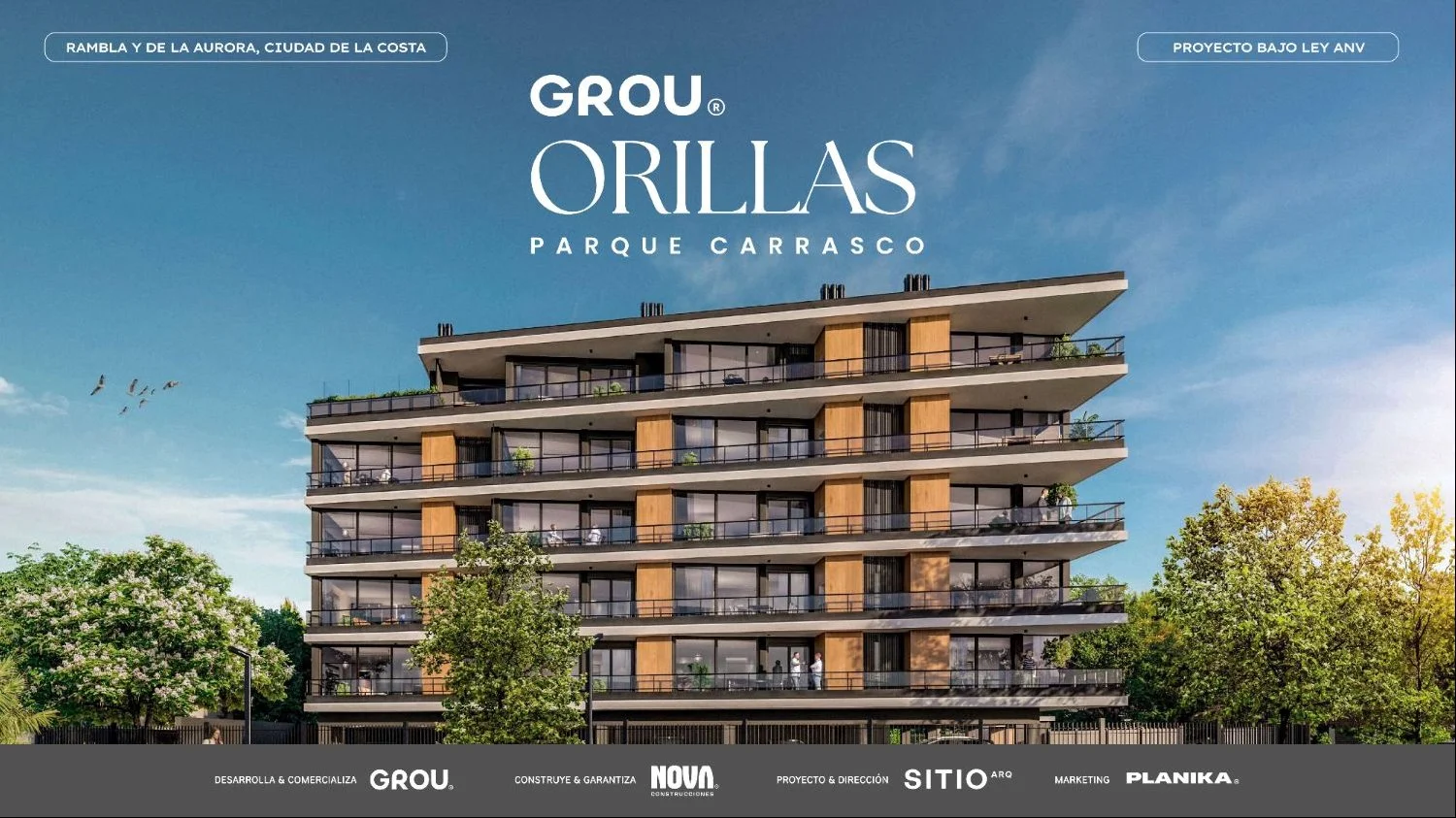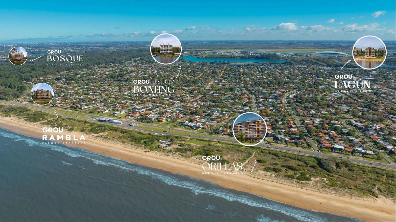PARQUE CARRASCO Proyecto GROU Orillas, sobre primera línea de la Rambla frente a la playa, en un entorno de naturaleza, a pasos de centros comerciales: Geant, Macromercado y a 5 minutos de Carrasco