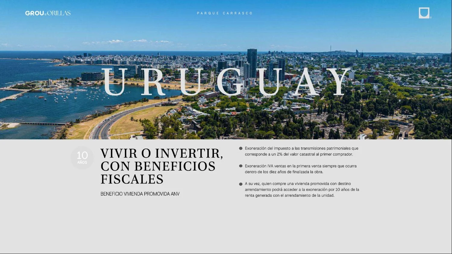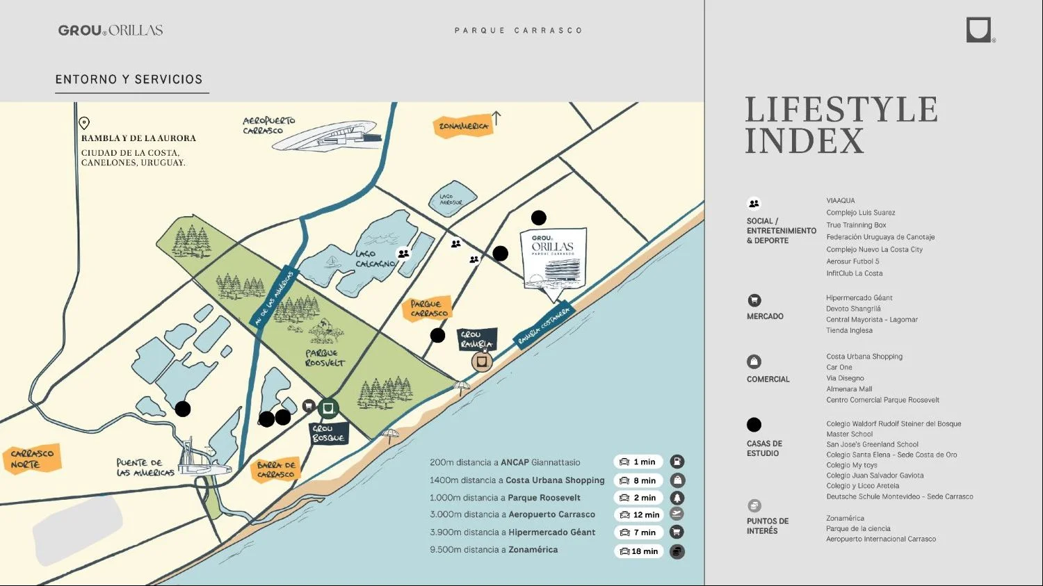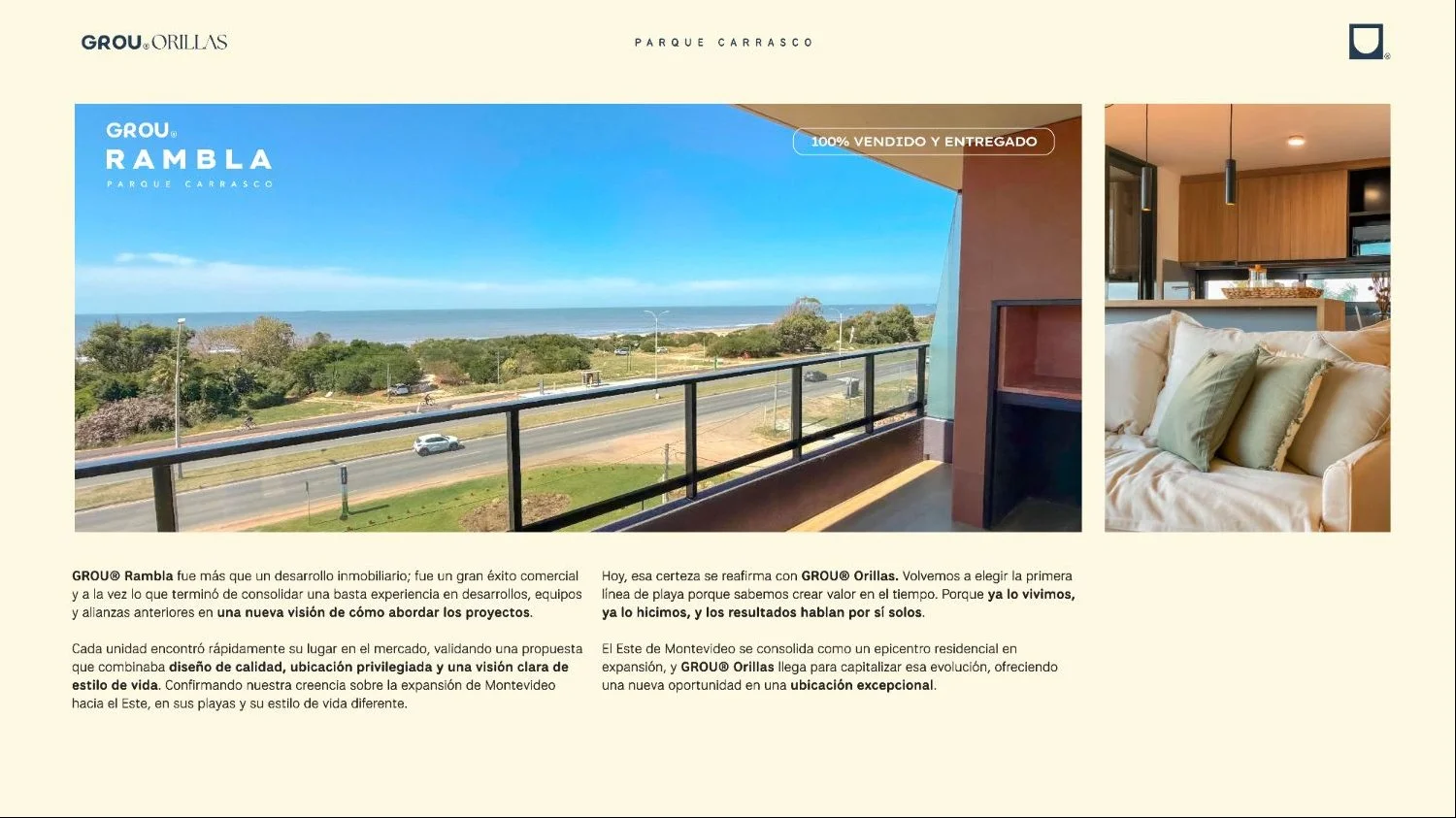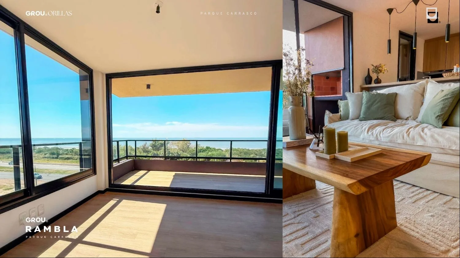 PARQUE CARRASCO Proyecto GROU Orillas, sobre primera línea de la Rambla frente a la playa, en un entorno de naturaleza, a pasos de centros comerciales: Geant, Macromercado y a 5 minutos de Carrasco