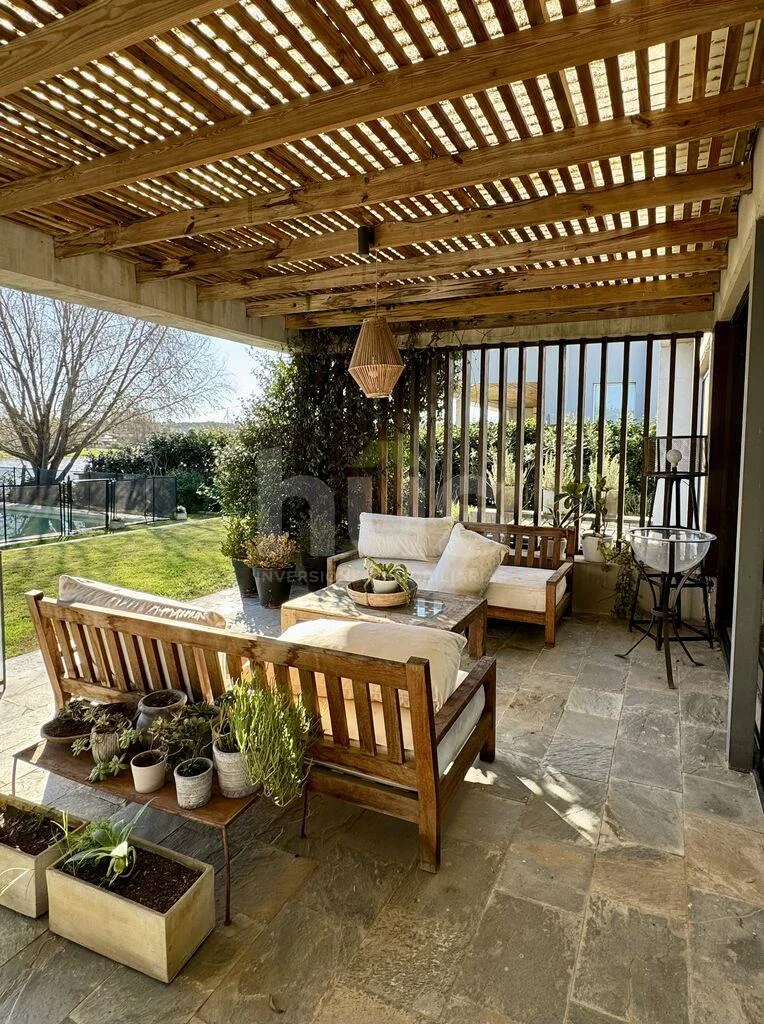 Hall de entrada con patio interno, gran living-comedor apaisado con ventanales de piso a techo con espectacular vista a jardín y lago.