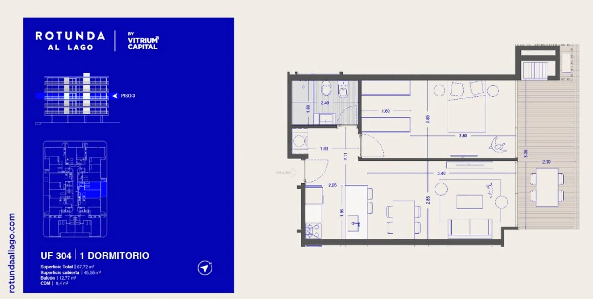 Corredor Responsable: - Contacto: Valeria Cruz Rotunda al Lago es un emprendimiento inmobiliario compuesto por cuatro torres, situado en Carrasco Este, sobre el Lago Calcagno. Torre 1 unidad 304 lateral derecho orientado al este El proyecto cuenta con apartamentos de 1, 2 y 3 dormitorios. Todas las unidades contarán con balcones equipados con parrilleros, placares empotrados y preinstalación para aire acondicionado. Etapa de lanzamiento con precios promocionales. Ocupación prevista Diciembre 2027 Precio en Pomoción por etapa pre lanzamiento integrando el 50% al compromiso de compra venta! Invertir en lanzamiento significa anticiparse y acceder a condiciones exclusivas que no vuelven a repetirse. Rotunda reúne todas las condiciones que un inversor busca con gran potencial de renta y re venta. Entre los amenities compartidos se encuentran: Café Rotunda Gimnasio Pet Spa (área para mascotas) Guardería náutica Wellness Point & Spa Piscina Solárium SUM con parrilleros Playroom (sala de juegos) Laundry / Tender (lavandería y tendedero) Bike parking (estacionamiento para bicicletas) Plaza de juegos infantiles Pocket parks (pequeños parques) Plaza de recreación Senderos sustentables Además, el proyecto se acoge a los beneficios de la Ley 18.795 (Ley de Vivienda Promovida - Vivienda Social), que incluye: - Exoneración del ITP - Exoneración de IRAE/IRPF a las rentas generadas de los alquileres por 10 años - Exoneración del IP por 10 años - Cocheras desde USD19.000 Conexiones 4,75% Cada Oficina es de propiedad, gestión y desarrollo independiente La presente publicación describe las características esenciales del inmueble, debiéndose consultar al responsable de la operación por la eventual actualización de las medidas, descripciones arquitectónicas y funcionales, servicios, impuestos, precios y demás información, cuyos valores son aproximados.