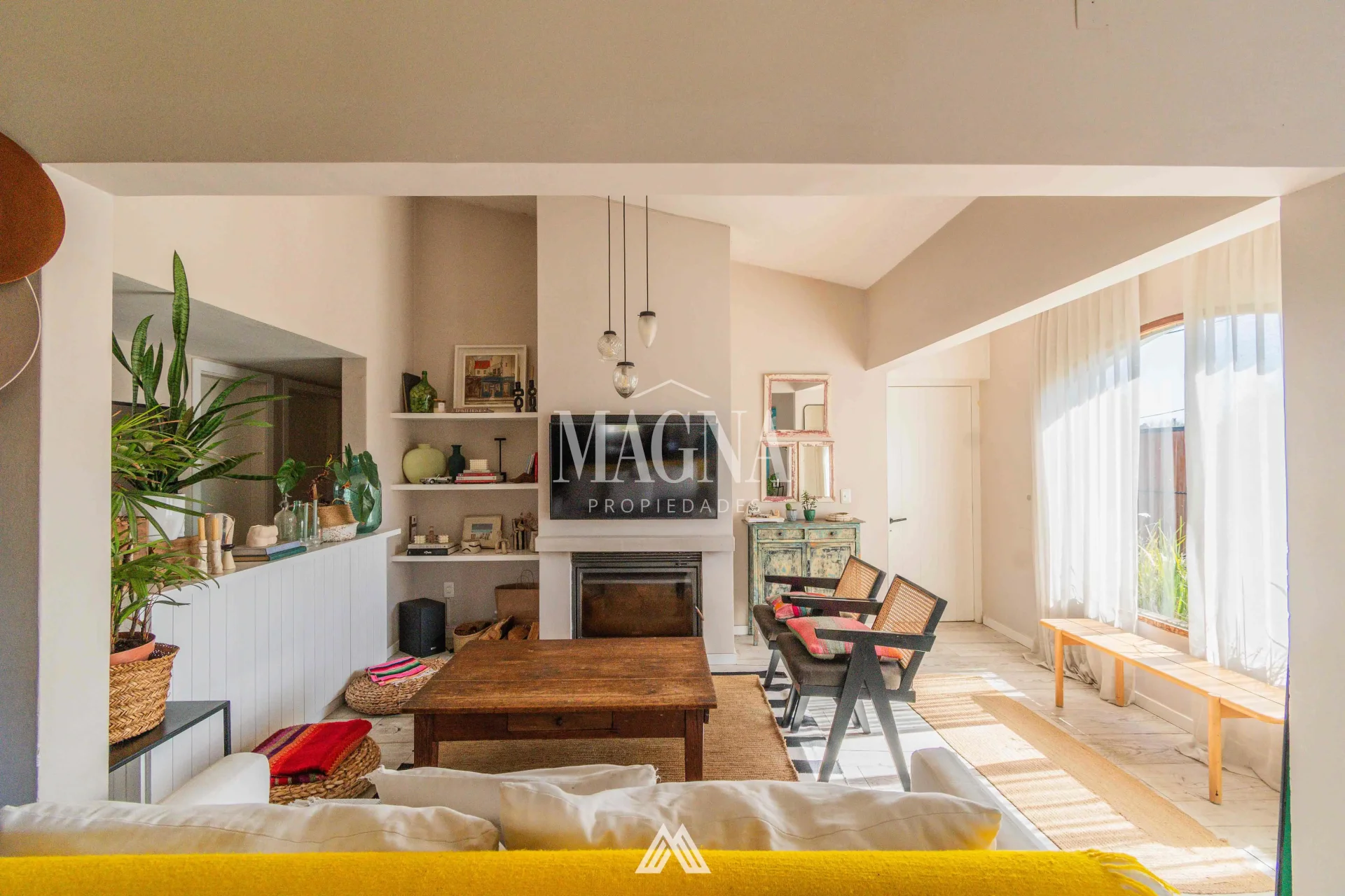 En Shangrilá Sur, sobre la tranquila calle Mar Sereno y a solo media cuadra del mar, encontramos esta casa en padrón único, totalmente reciclada y lista para habitar. Su ubicación es perfecta para quienes buscan tranquilidad sin alejarse de Montevideo. La propiedad cuenta con 805 m² de terreno y 230 m²construidos, distribuidos en: * Vivienda principal con 3 dormitorios y dos baños y medio (la master suite es uno de los grandes atractivos de la casa: con orientación este, amplio metraje, un cómodo vestidor y un baño con bañera diseñado para el relax) * Garage para 2 autos con dormitorio de servicio y baño completo. * Barbacoa techada con acceso independiente, ideal para reuniones. El interior se destaca por su living comedor luminoso con estufa de alto rendimiento, calefacción por losa a gas y aire acondicionado en todos los ambientes. La cocina moderna, con barra desayunadora y excelentes mesadas, conecta directamente con la barbacoa. En el exterior se disfruta de un jardín con piscina privada y un área de lavadero independiente totalmente equipada. Una casa con estilo, confort y ubicación privilegiada, pensada para disfrutar en familia todo el año. Coordiná tu visita hoy mismo y descubrí tu nuevo hogar a pasos del mar. Victoria Larramendi – Magna Propiedades 092 223 101 | vlarramendi@magnapropiedades