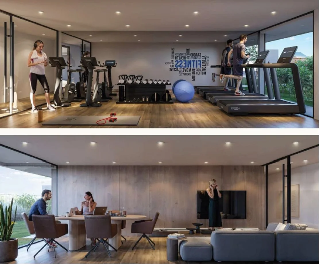 Junto a los amenities tales como piscina, parrillero, cowork, gym y plaza de niños buscamos facilitar y elevar la calidad de vida, ofreciendo un amplio abanico de actividades complementarias pensadas para el equilibrio y la convivencia en un nuevo disfrute urbano.