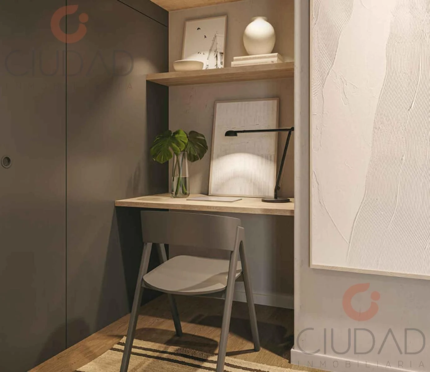 - Escritorio incorporado para trabajar y estudiar.