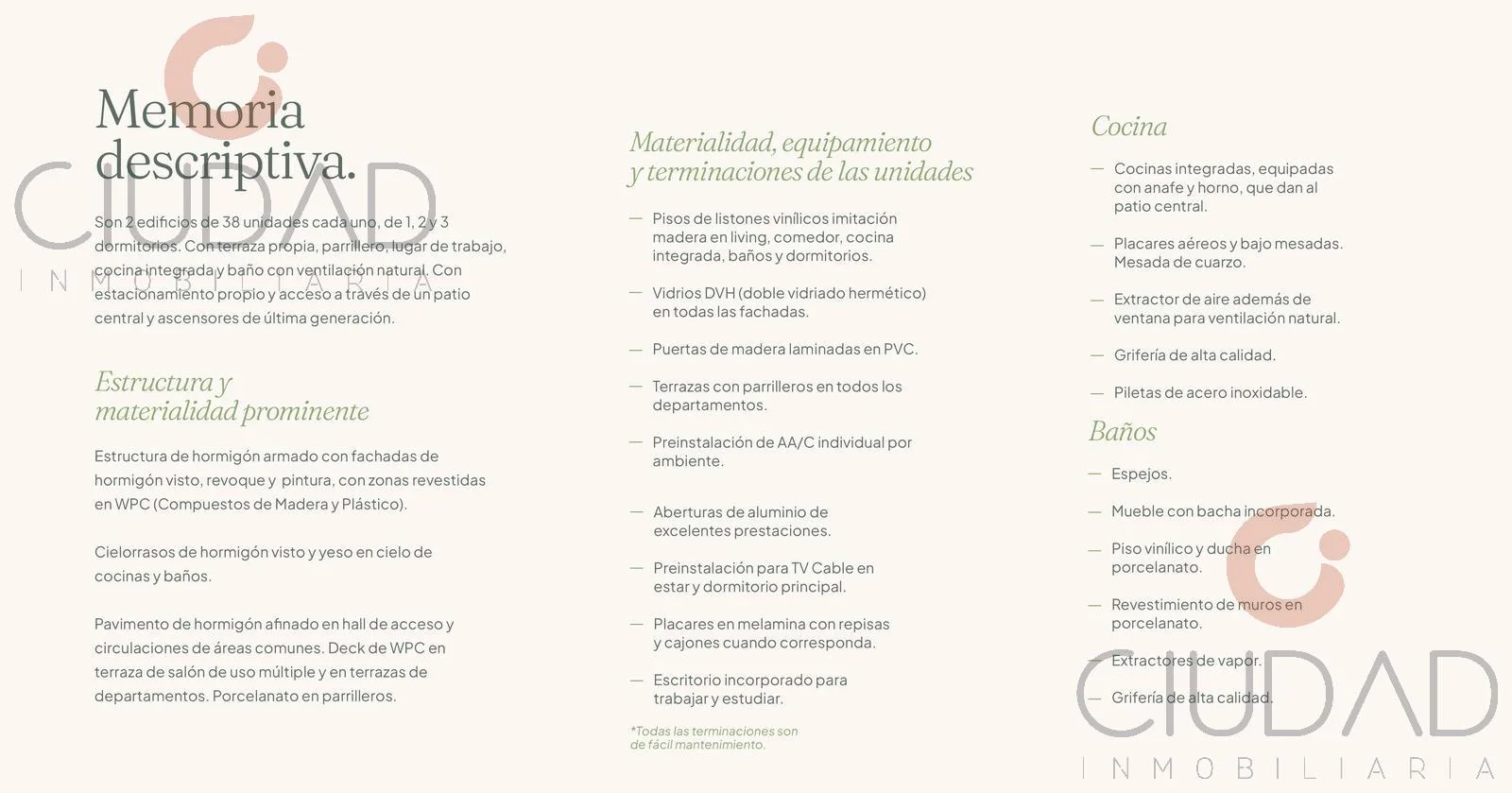 AMENITIES:Parque privado de 1.500 m² con jardines, fogones y circuito fitness.