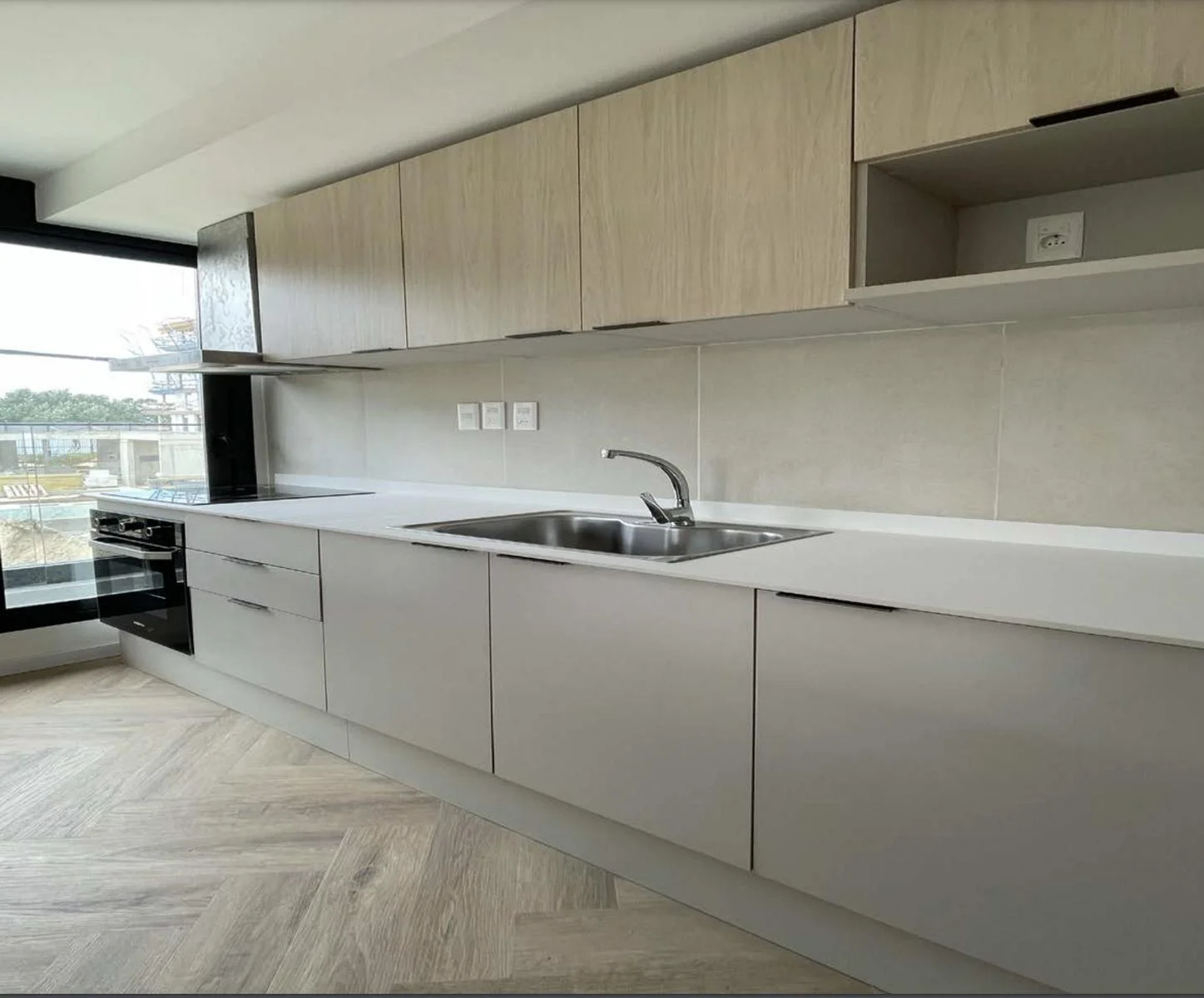 Apartamento con Cocina Integrada a amplio Living Comedor con Barra pasa platos. Salida a Terraza Exclusiva con Parrillero Propio. Baño completo. Dormitorios al Frente con salida a Terraza y Placares.