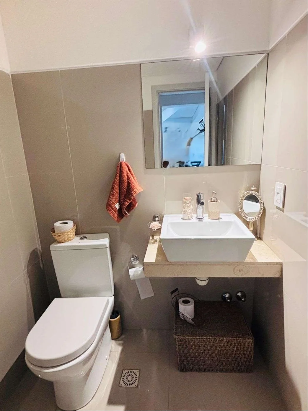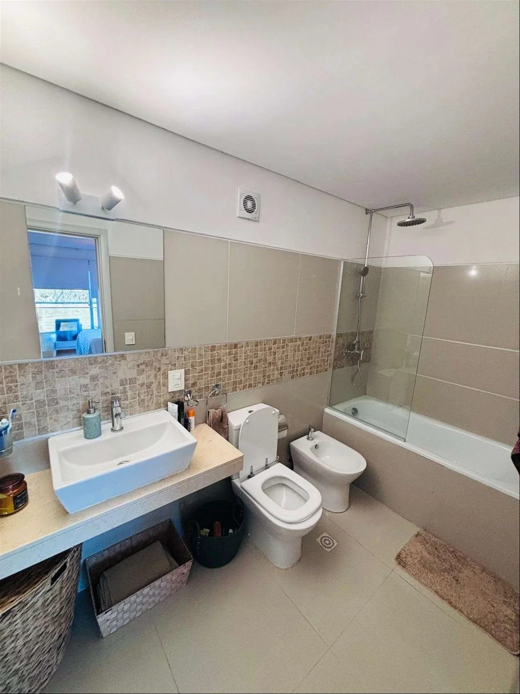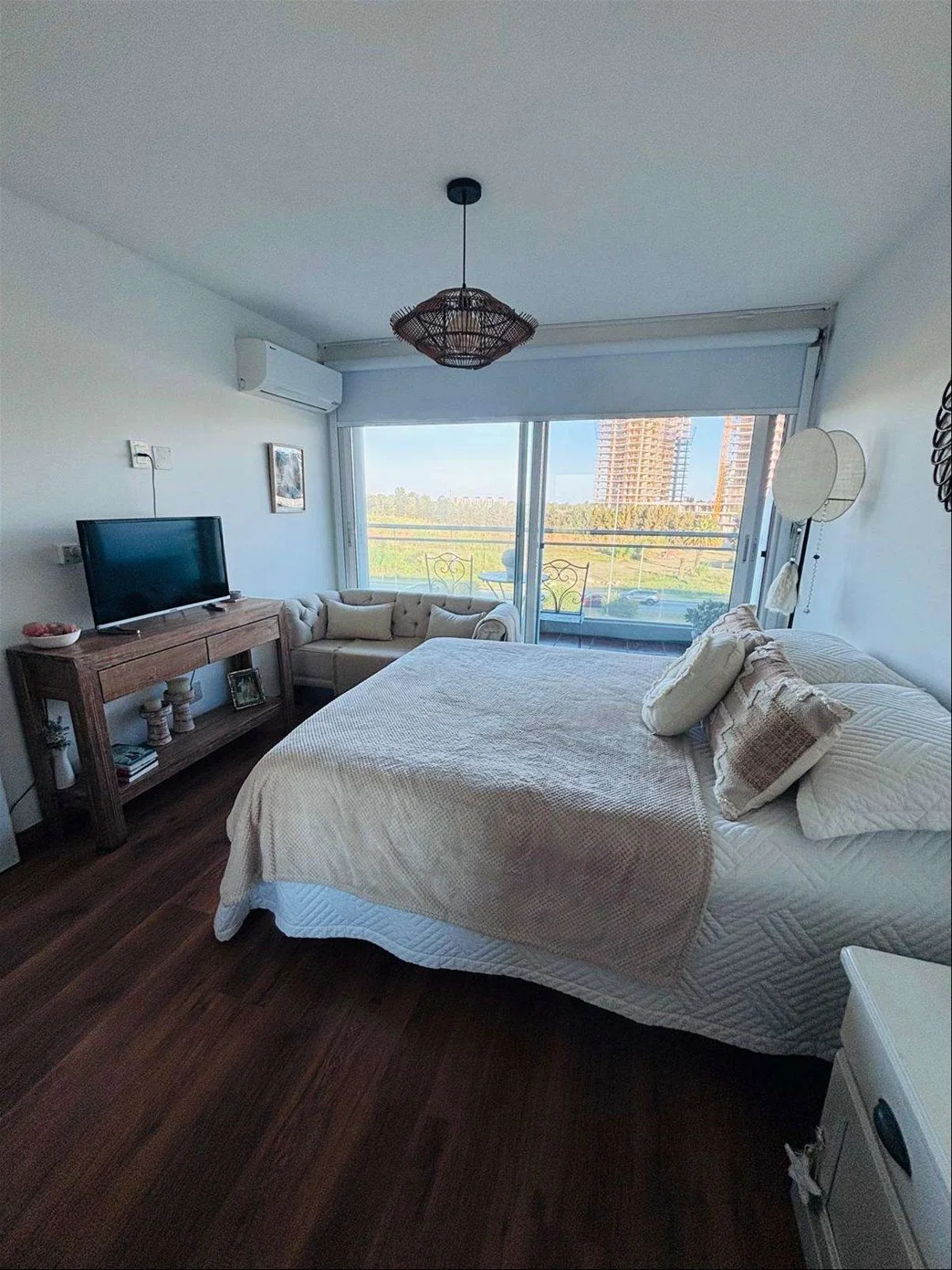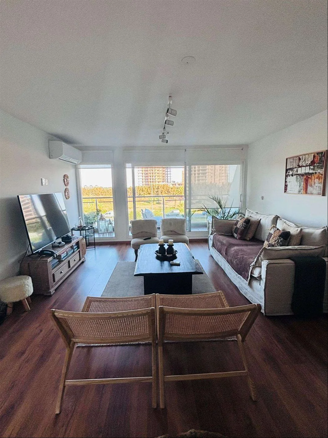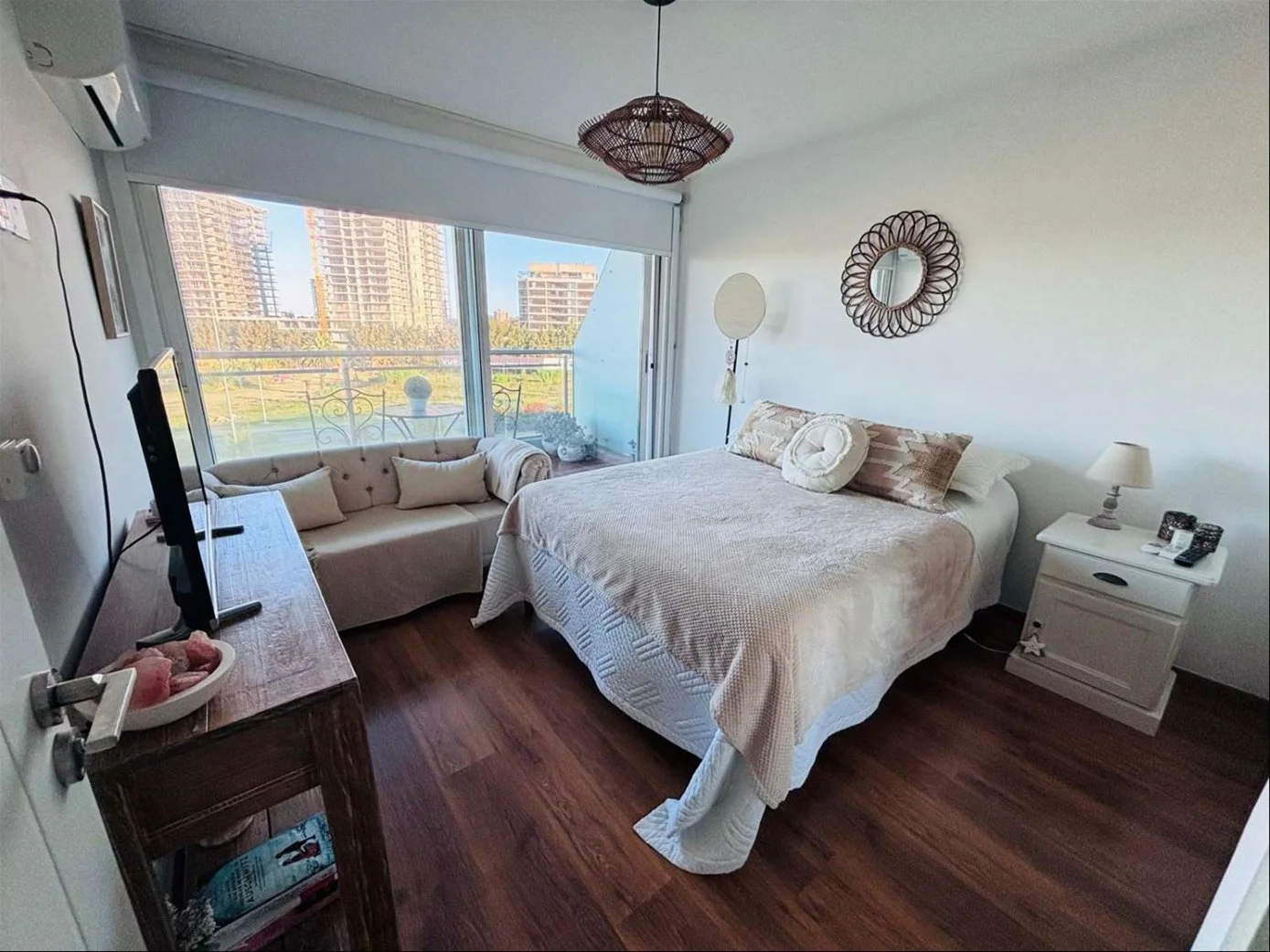 Cuenta con 2 dormitorios en suite con placares, cada uno con su propia terraza, y baño social (3 baños en total).