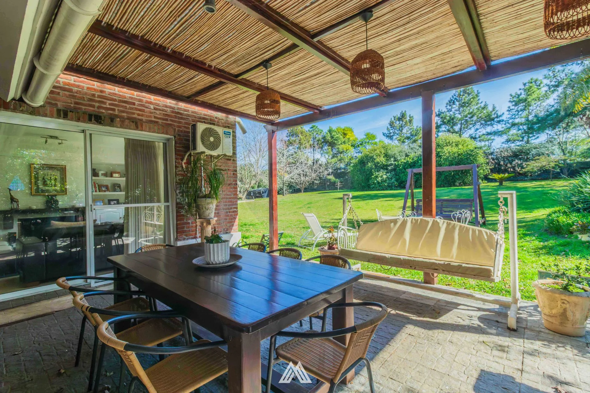Corredor Responsable: - Contacto: Andrea Ghuietti Tu oasis familiar en Barrio Privado Carmel ¿Te imaginas viviendo en un lugar donde la seguridad y la naturaleza se unen? Esta casa de 350 m² edificados, en terreno de 2,273 m², en construcción tradicional, es ideal para una familia que valora el espacio y la tranquilidad. En la planta baja un cálido living y un estar, ambos con estufa a leña. La cocina con comedor diario es el lugar ideal para el día a día y cuenta también con despensa. Además en esta misma planta, un recibidor, comedor formal y un cuarto de servicio completo. La planta alta es el área de descanso, con una suite principal, dos dormitorios adicionales y otro baño completo. La terraza de la planta alta es un lugar perfecto para desconectar. Pero la verdadera joya de esta propiedad es su exterior. El estar de la casa se conecta con una zona techada y un espectacular jardín, un lugar inmenso para que los niños jueguen o para organizar reuniones. Y para tener un espacio personal, el fondo cuenta con una construcción independiente que te da la flexibilidad de usarla como quieras,. Además, la casa cuenta con una cochera techada para 2 vehículos Estilo de Vida Exclusivo en un barrio que también ofrece áreas de uso común a primer nivel. Un entorno tranquilo y seguro con todas las comodidades a tu alcance. Este barrio privado ofrece una amplia gama de servicios diseñados para el esparcimiento, la actividad física y la vida social. Para ejercitarse sin salir del barrio, el gimnasio cuenta con equipamiento de última generación y vestuarios completos para tu comodidad. Disfruta de la gran piscina, además, encontrarás cómodas reposeras y sombrillas para relajarte y tomar sol en un ambiente de total tranquilidad. Para los amantes del deporte, el barrio cuenta con una cancha de tenis y de fútbol 5. Para tus eventos y celebraciones, el salón de usos múltiples es la opción ideal, con capacidad para hasta 60 personas y una zona de estacionamiento delimitada para la comodidad de tus invitados. Este espacio está completamente equipado, con estufa a leña, parrillero y cocina para que puedas celebrar con todo lo necesario. Espacio exterior con espectacular zona verde. Entretenimiento para los más chicos y no tan chicos, donde tienen su propio espacio de diversión en el área de juegos, equipada entre otras cosas con aro de básquet y distintos juegos de madera estilo plaza para que pasen horas de entretenimiento. La playita de descanso y el lago ofrece un espacio sereno para desconectar y disfrutar de la naturaleza. También el salón de juegos para tardes de diversión y competencia. ¡Ven a conocer esta casa y descubre la vida que te espera en este barrio privado! Cada Oficina es de propiedad, gestión y desarrollo independiente La presente publicación describe las características esenciales del inmueble, debiéndose consultar al responsable de la operación por la eventual actualización de las medidas, descripciones arquitectónicas y funcionales, servicios, impuestos, precios y demás información, cuyos valores son aproximados.