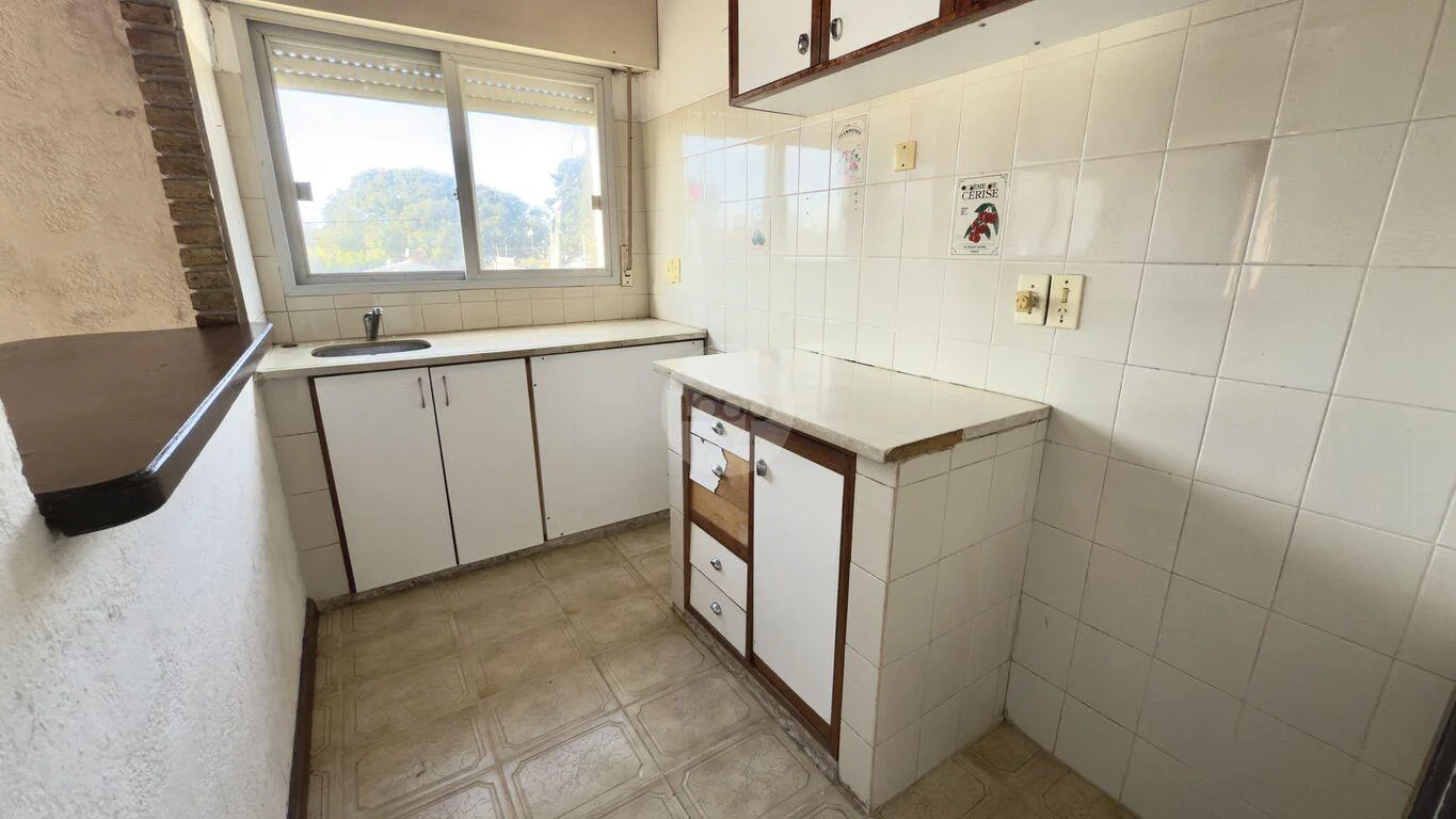 Cocina definida, cómoda y funcional, con parrillero integrado.