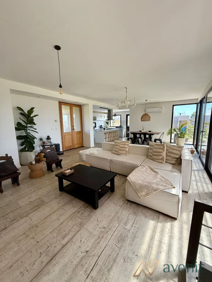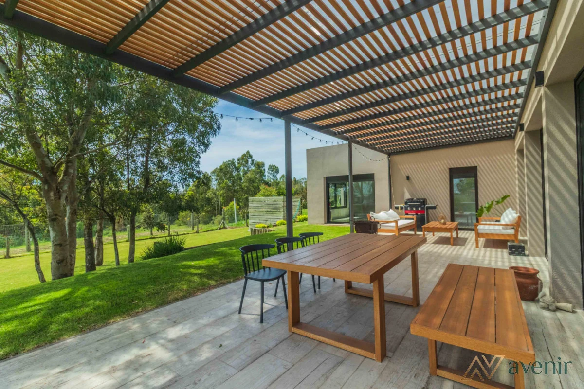 Se trata de una casa moderna de excelente calidad de terminaciones en una sola planta, dentro de un terreno de 1038m2 con un hermoso jardín diseñado acorde a la inmejorable orientación norte del terreno donde se puede apreciar desde su pérgola techada y mismo desde el interior de la casa.