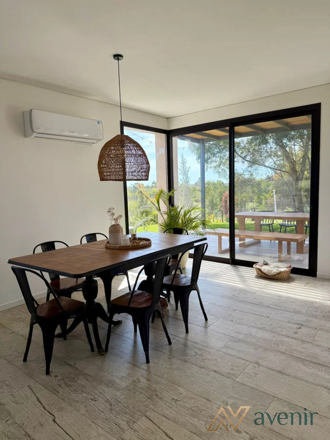 La calefacción es por losa radiante eléctrica y estufa a leña de alto rendimiento. Incluye aires acondicionados inverter en todos sus ambientes.