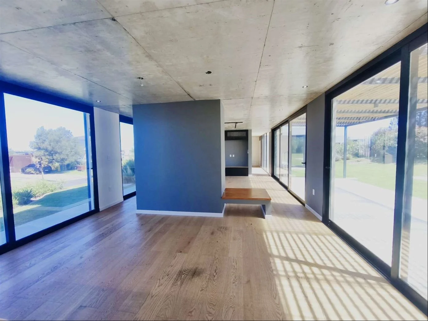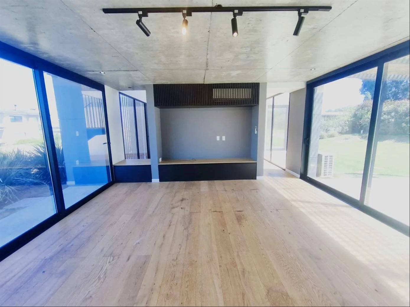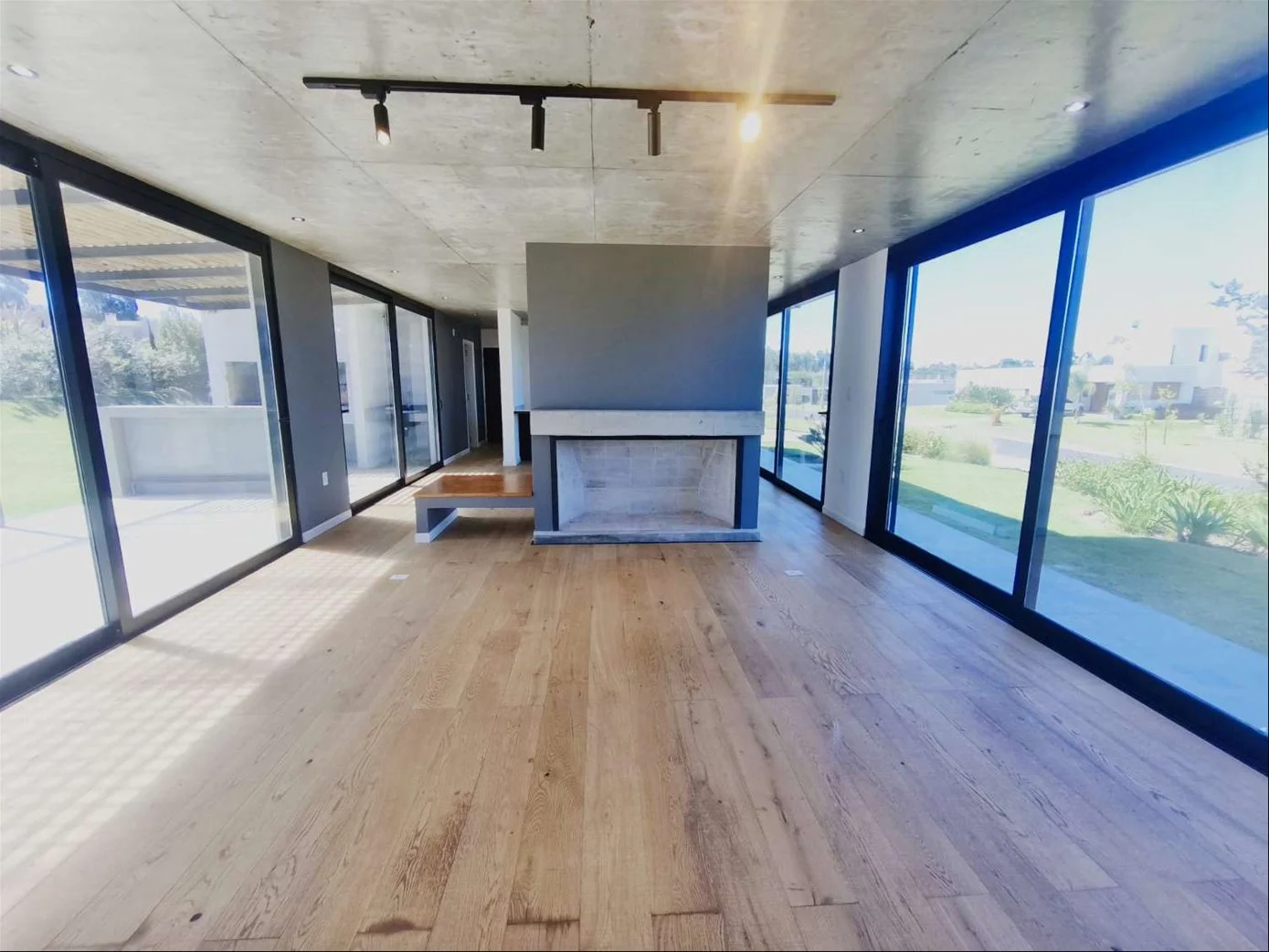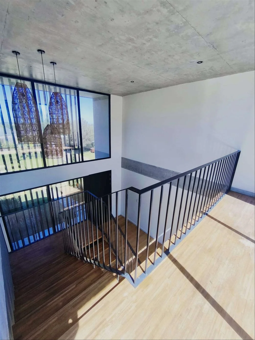 Propiedad de excelente construcción en dos plantas, caracterizada por su estética moderna, luminosidad y terminaciones de alta calidad (pisos de madera y porcelanato gris).