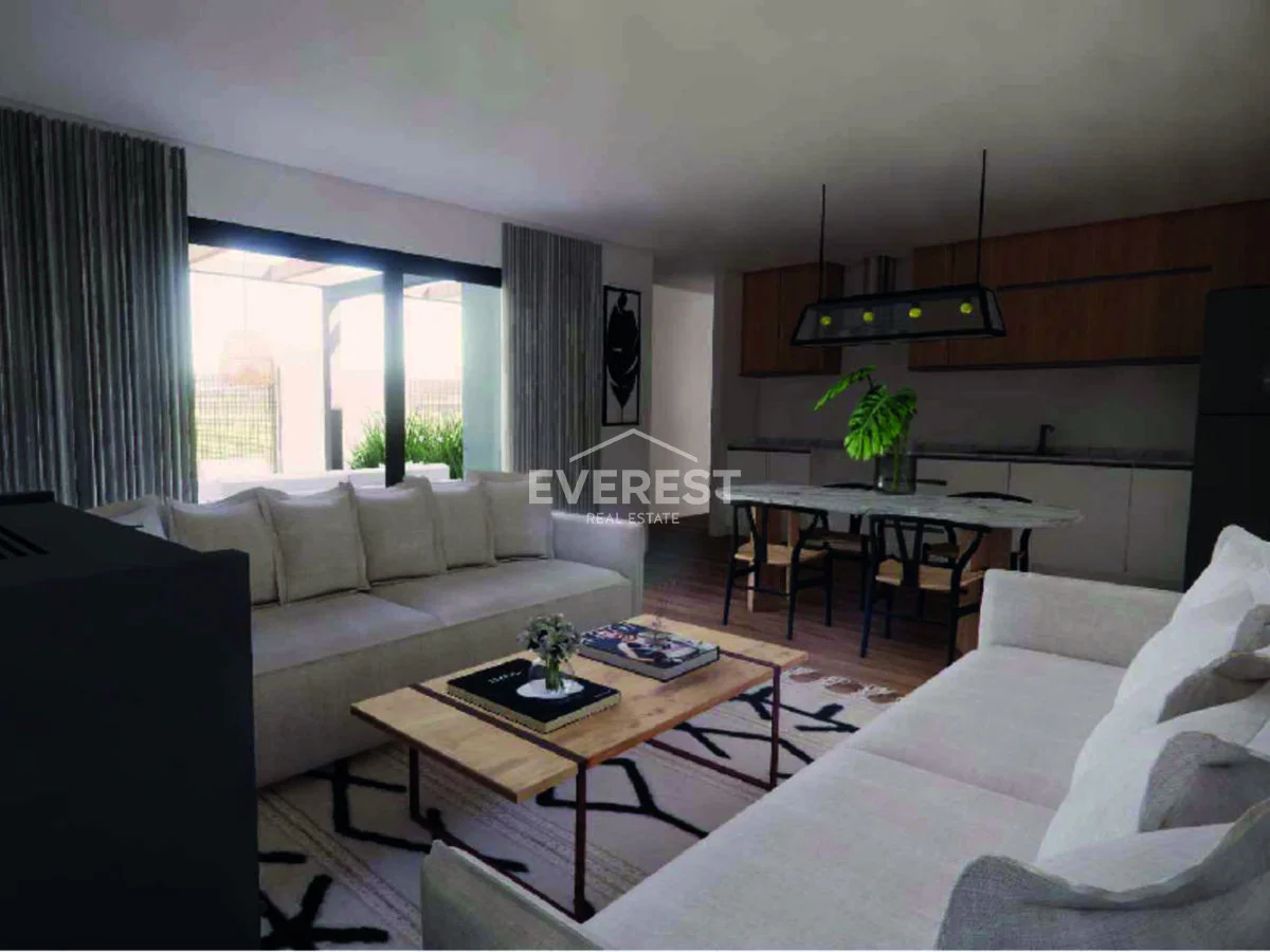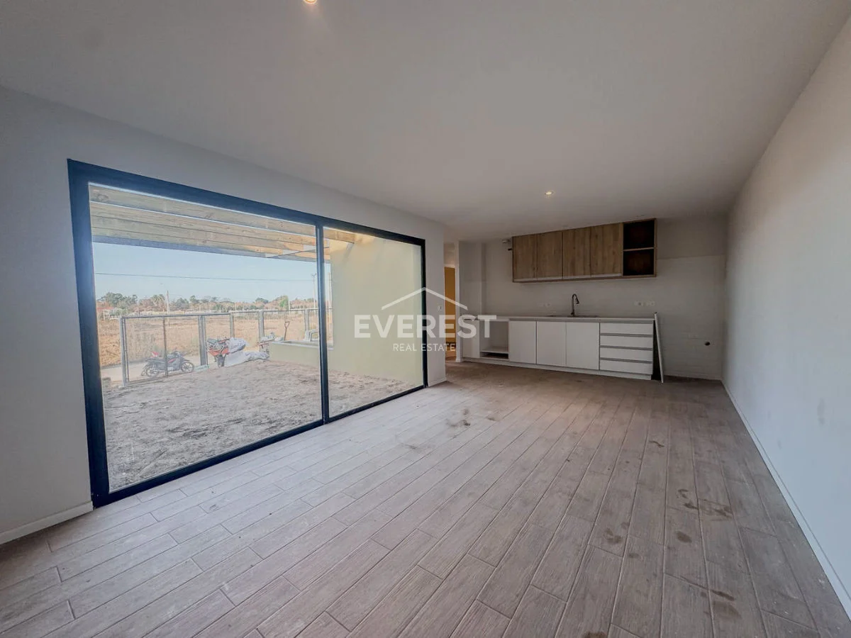 El interior se distribuye en un luminoso living-comedor con grandes ventanales que aportan luz natural durante todo el día.