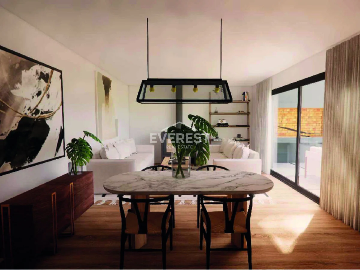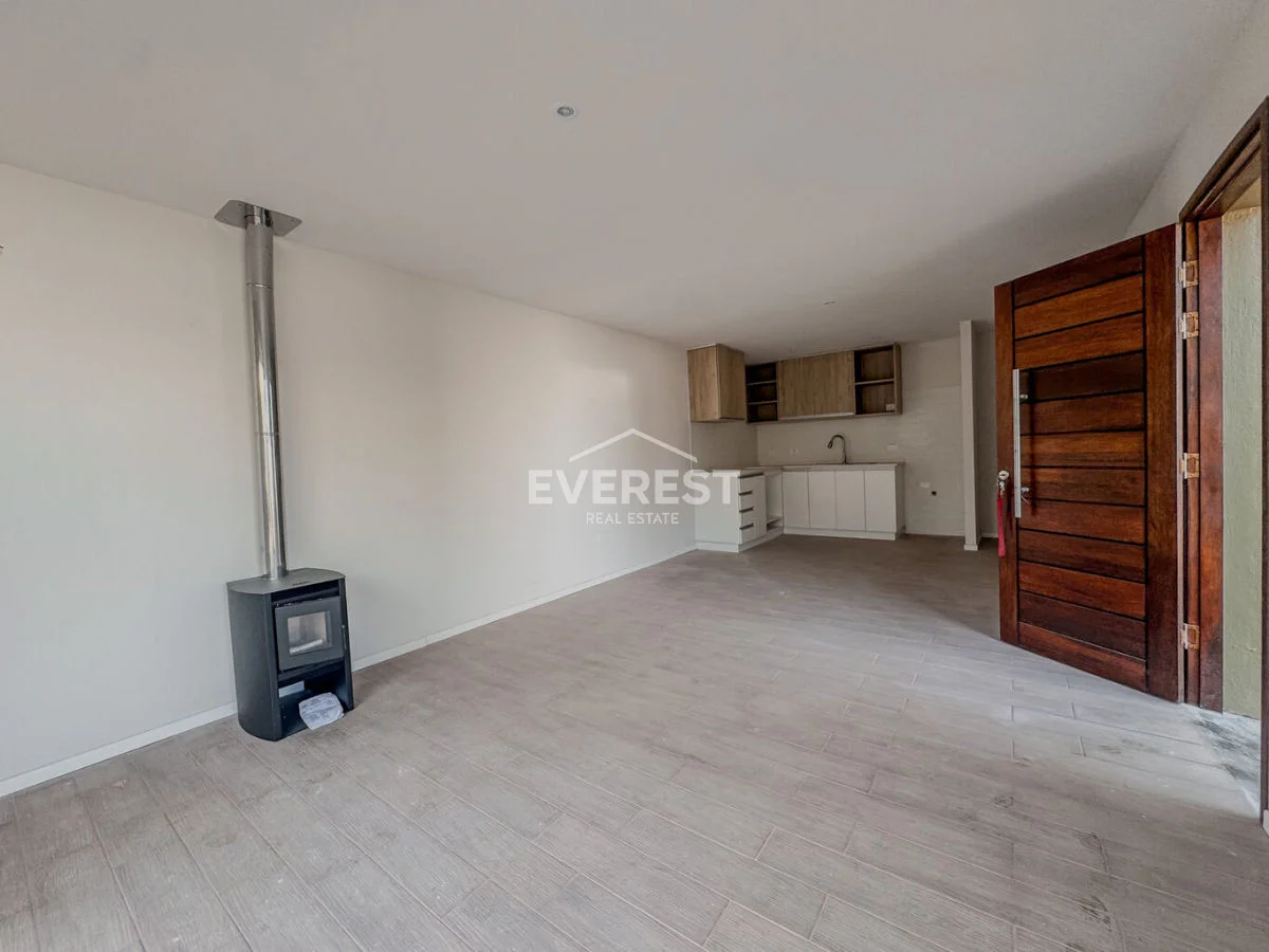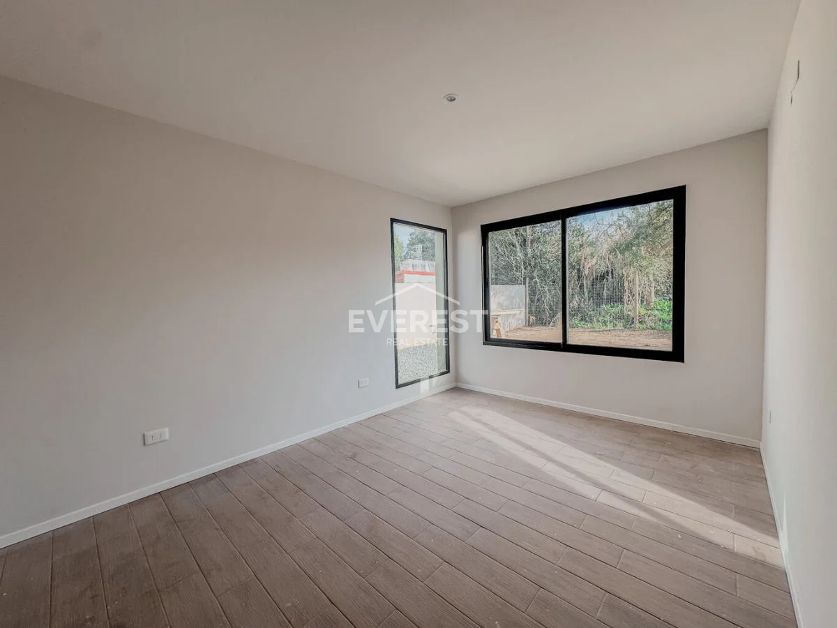 El interior está pensado para aprovechar la luz natural, con un living-comedor amplio y ventanales grandes que llenan los ambientes de claridad.