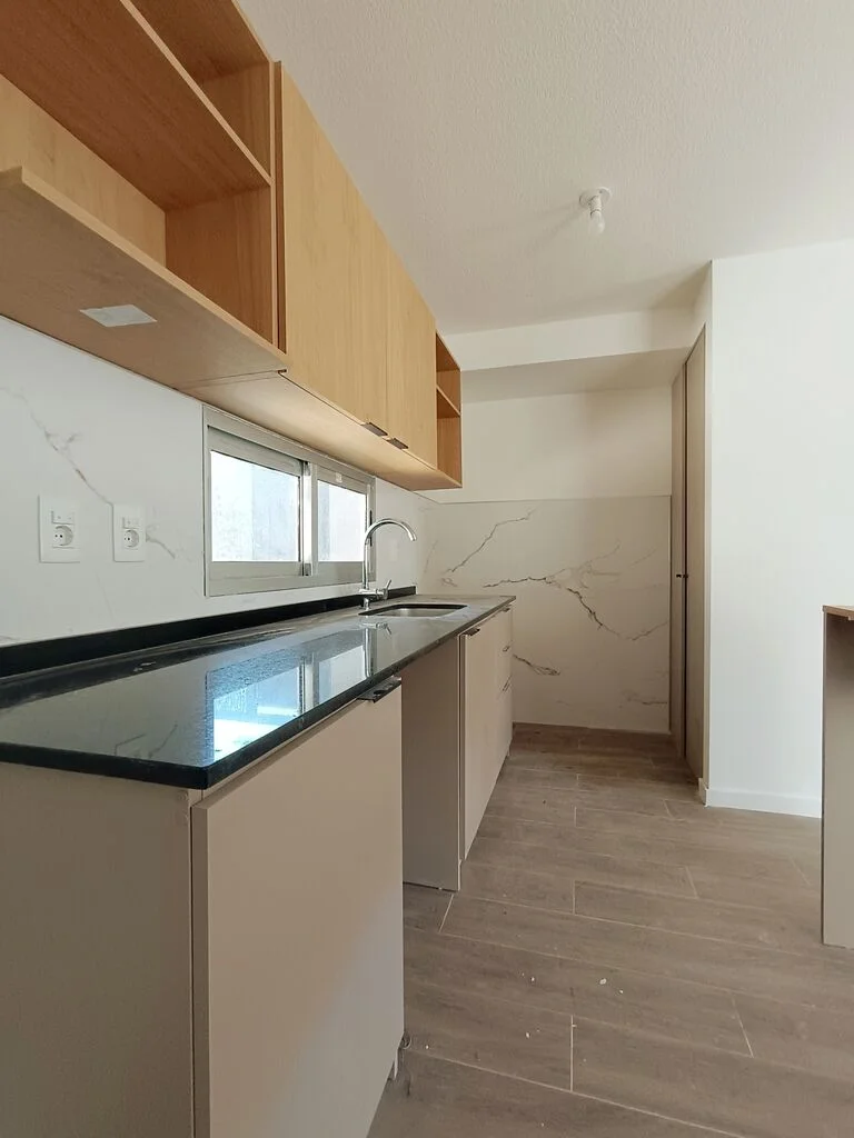 Planta Baja: living comedor con cocina integrada con mueble en melamínico MDF bajo y sobre mesada. Baño social. Ingreso vehicular y peatonal independiente, cochera para dos o mas vehículos, parrillero, pérgola