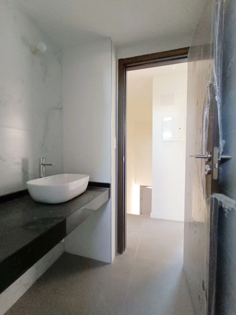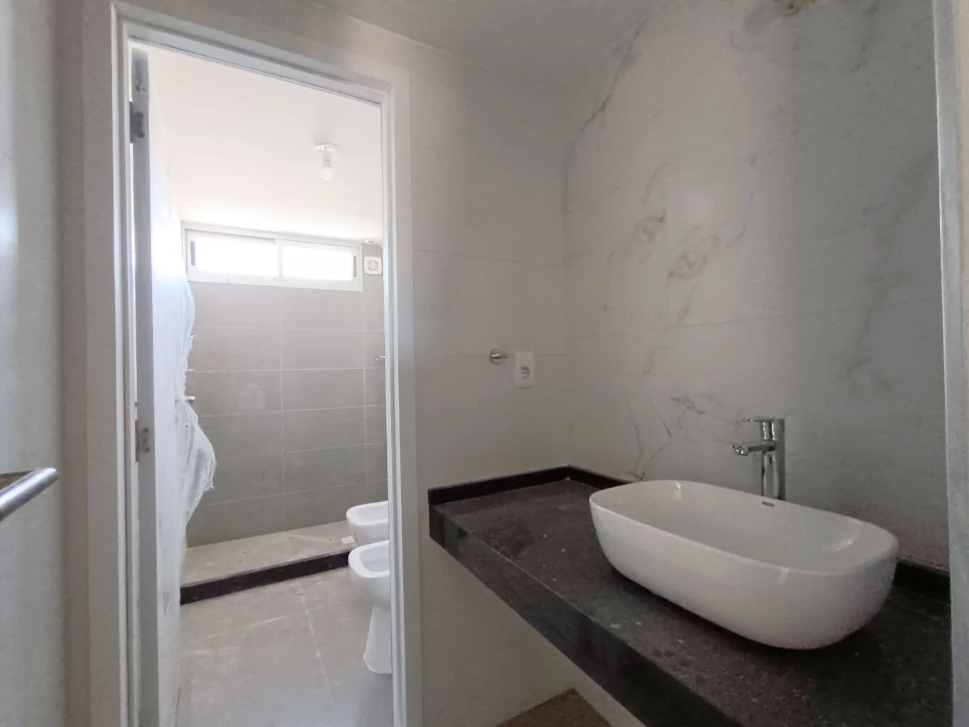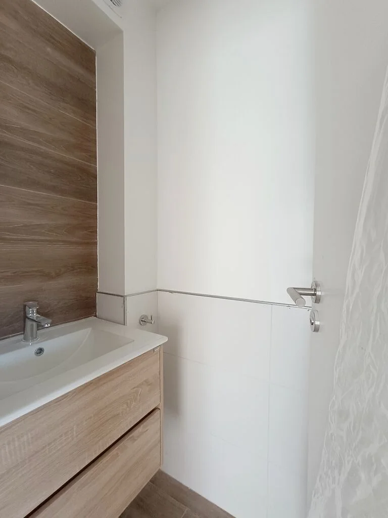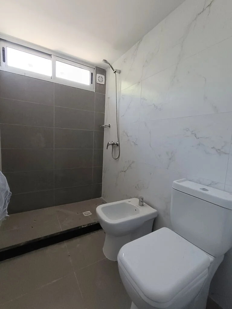 Baño completo compartimentado.
