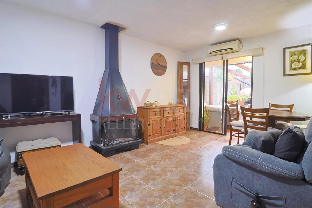 Living comedor (5,65 x 3,40 m) con estufa a leña.