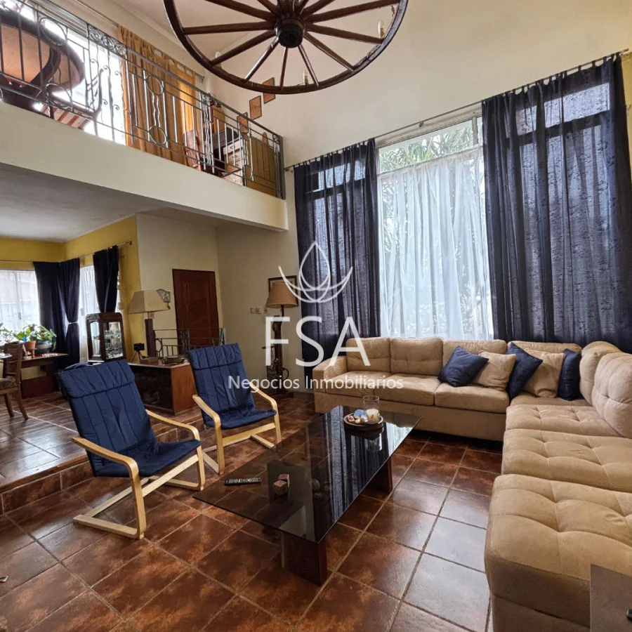 - Amplio living con estufa a leña de hierro que llega hasta la segunda planta.