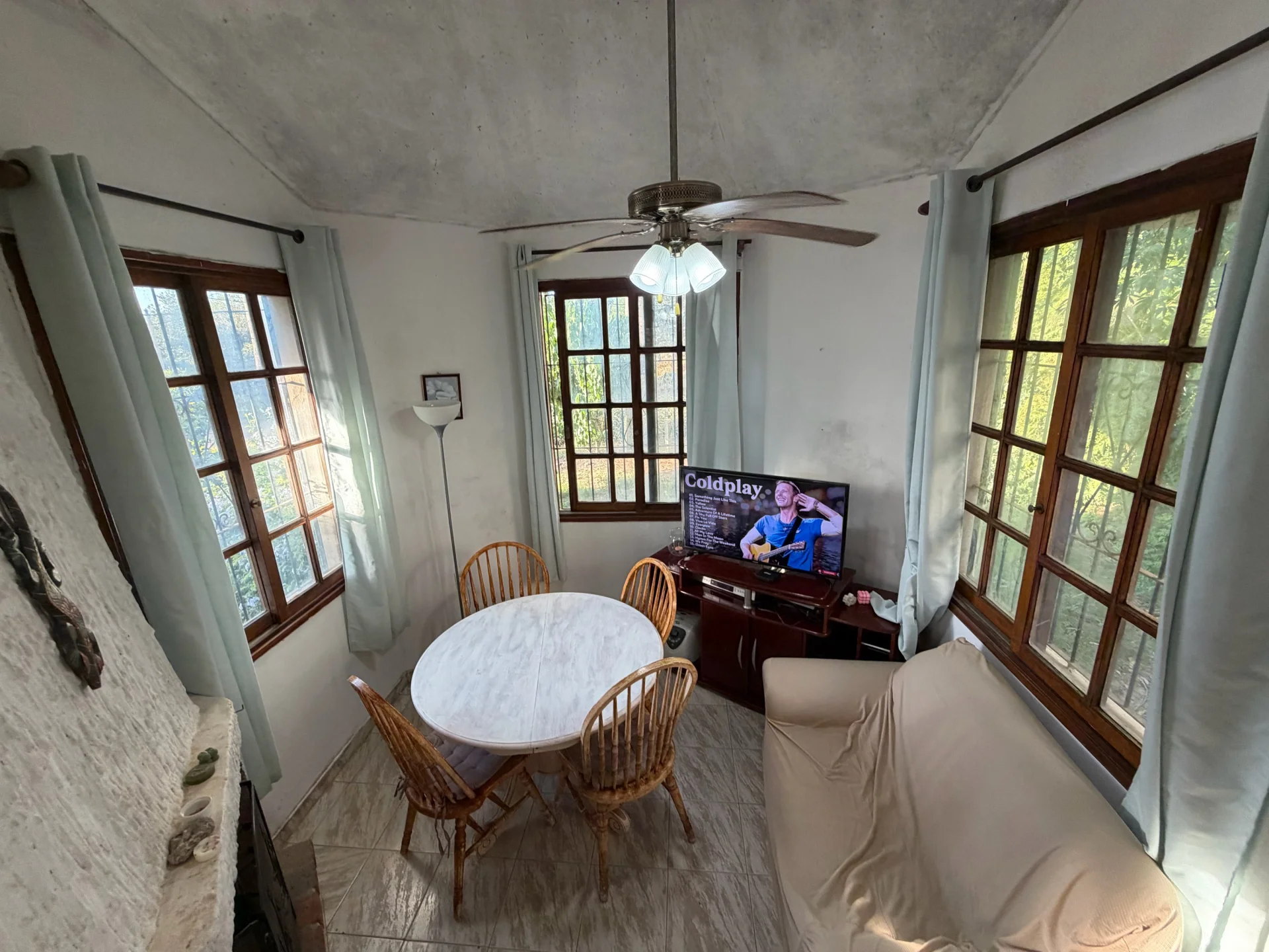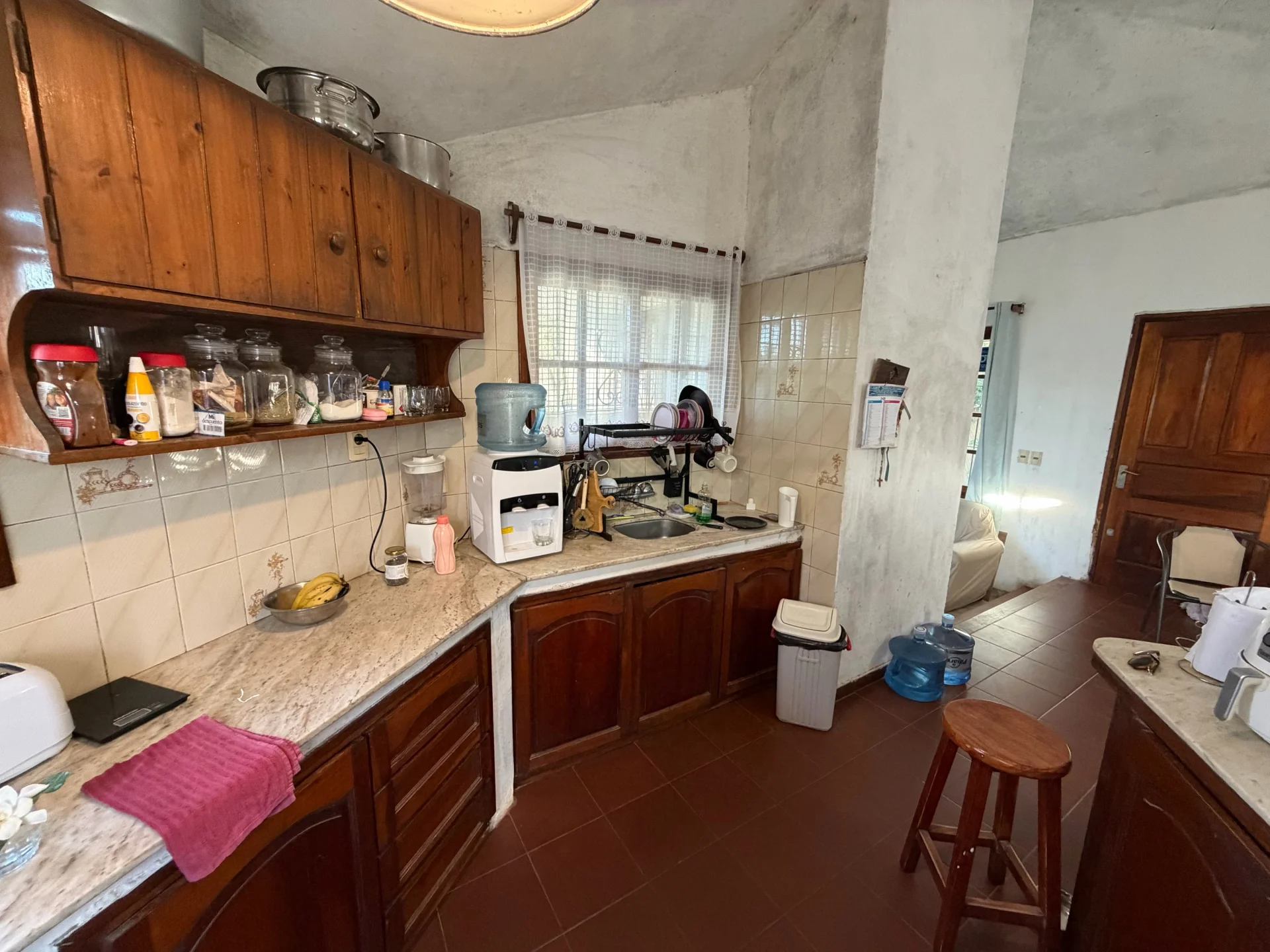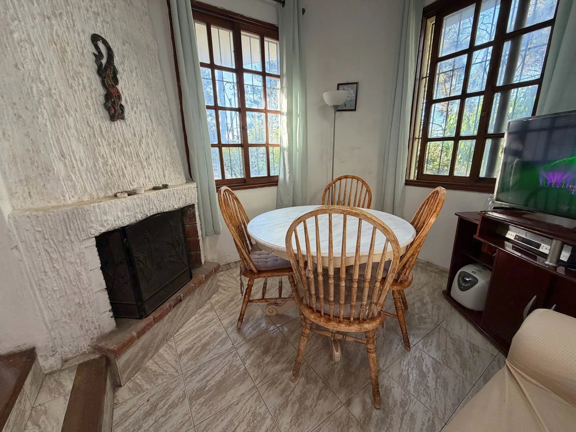 Todas las aberturas son en madera y cuentan con rejas, brindando seguridad y un estilo tradicional que acompaña la construcción.