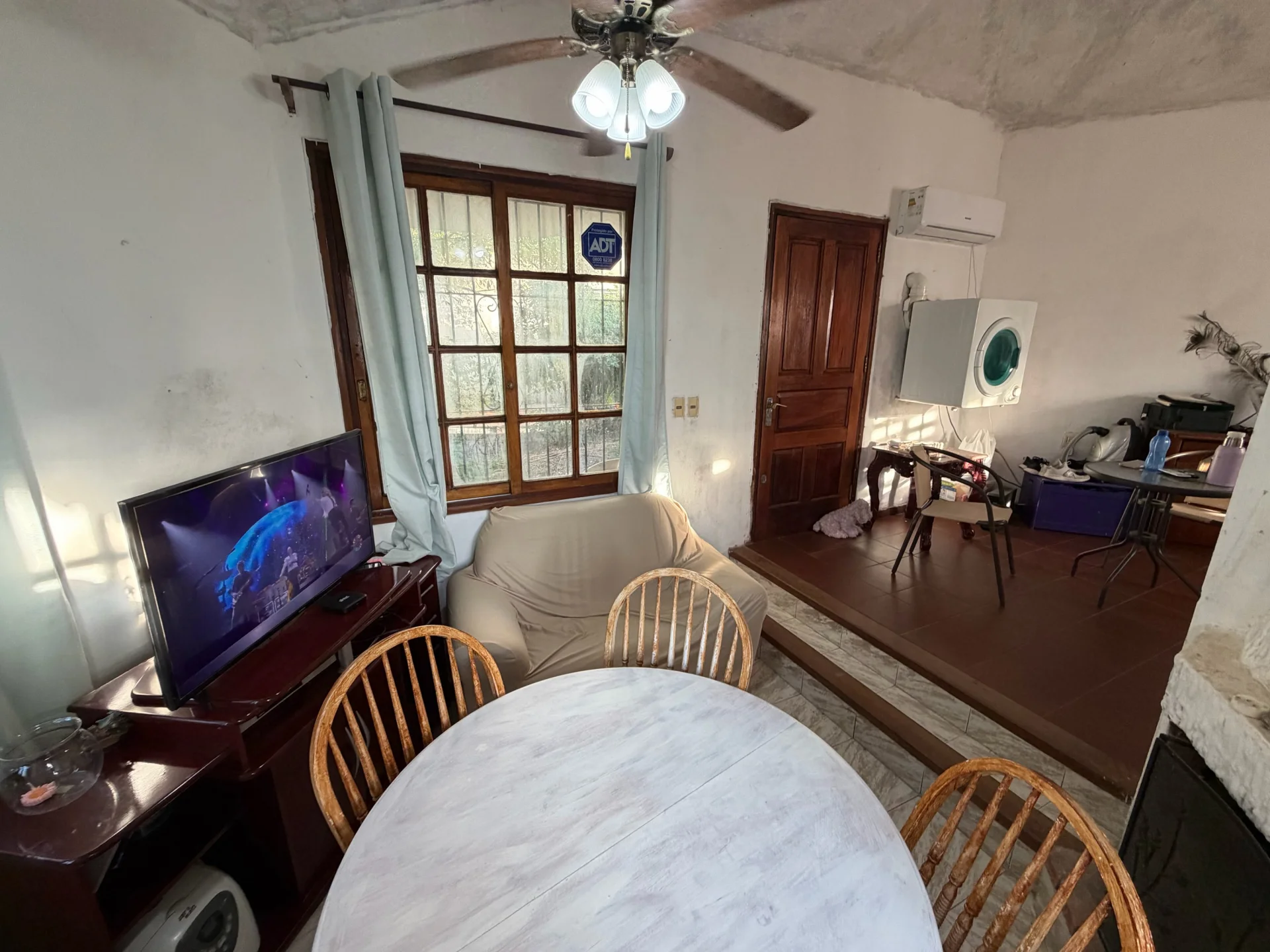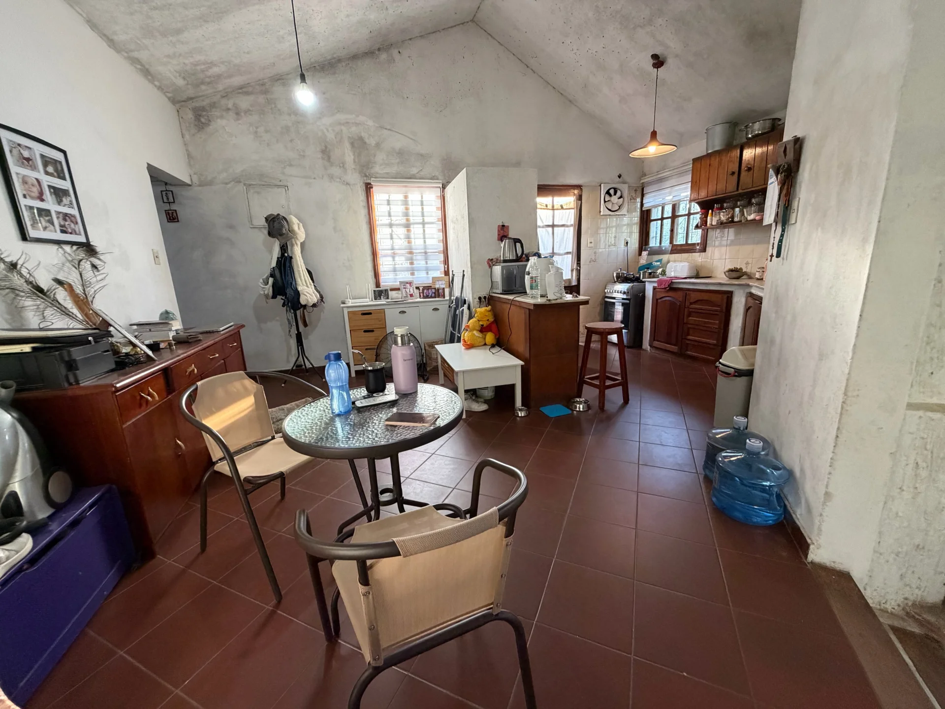 Al ingresar nos recibe un acogedor living con estufa a leña en desnivel, generando un espacio cálido y con personalidad. El comedor se integra armónicamente con la cocina, la cual se encuentra semi definida mediante barra desayunadora y cuenta con muebles aéreos y bajo mesada en madera, aportando calidez y funcionalidad.