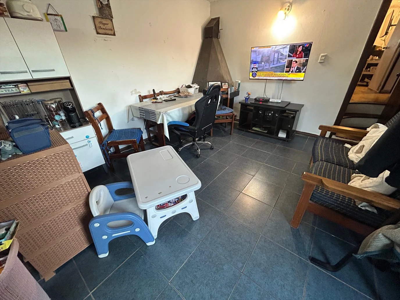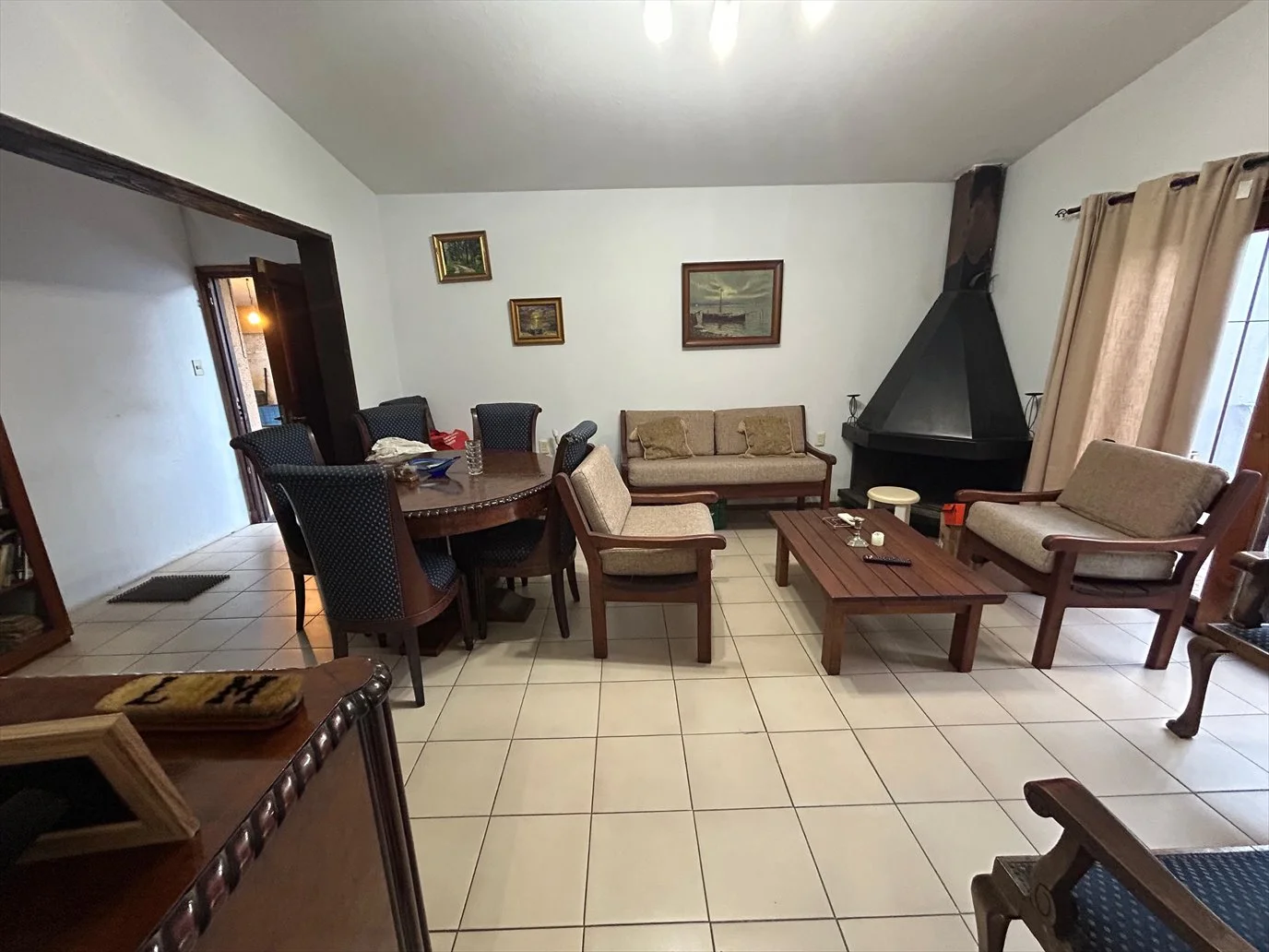 Casa secundaria (57 m²): 2 dormitorios, living con estufa a leña, cocina integrada y baño completo.